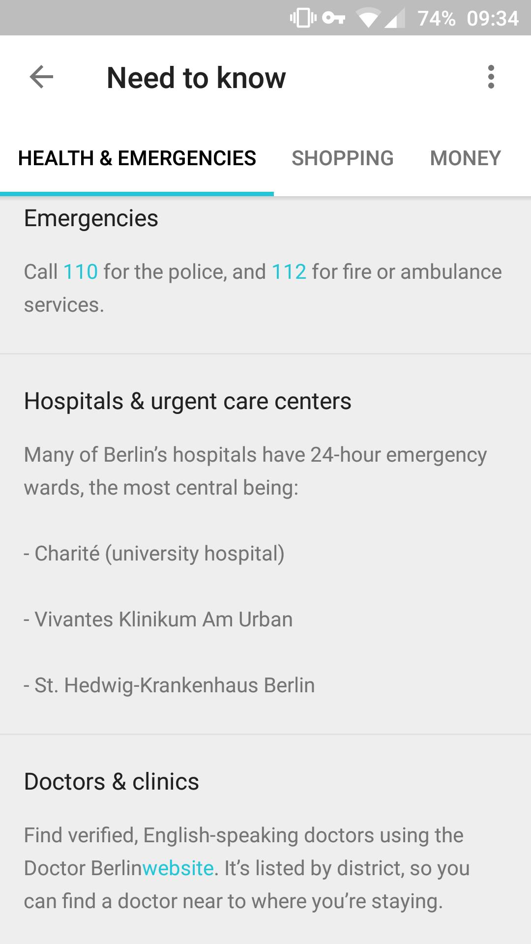 Hetzelfde geldt voor het kopje 'Need to know', waar praktische informatie staat over het land zoals het landelijke alarmnummer, de dichtsbijzijnde ziekenhuizen, en waar je geld kunt pinnen.