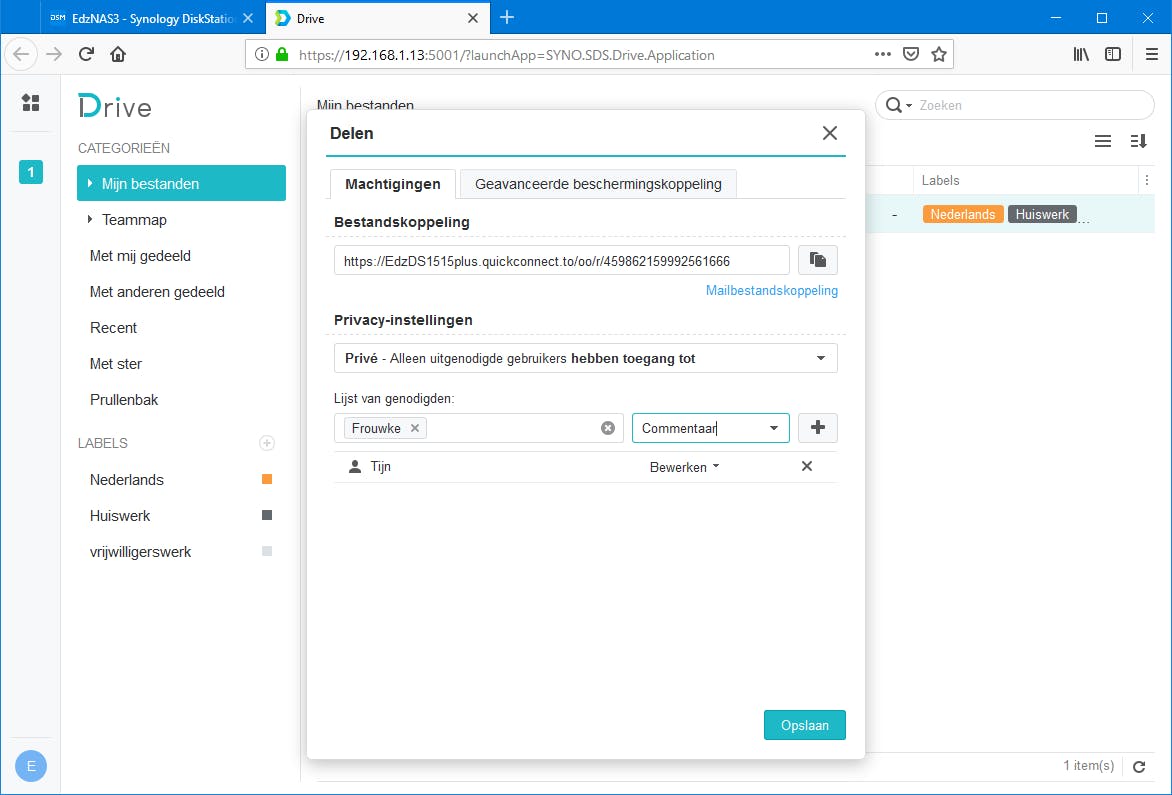 Bij gedeelde documenten is er meestal ook sprake van wijzigingen en/of commentaren. In de map Met mij gedeeld staan documenten die anderen met jou gedeeld hebben. Na het openen mag je de handelingen verrichten waarvoor je rechten hebt gekregen. Via de knop Commentaar invoegen op de werkbalk boven in het scherm voeg je bijvoorbeeld commentaren toe. Deze zijn vervolgens ernaast in de kantlijn te zien. Een document kan commentaren van meerdere mensen bevatten. Hierop kun je zelf ook weer reageren. Zo kun je samen met de anderen het gedeelde document verbeteren. Als eigenaar van een document kun je commentaren afvinken wanneer ze zijn behandeld, waarna ze verdwijnen. Is Synology Chat geïnstalleerd op de nas, dan kun je de commentaren ook live in een chat met de andere gebruikers bespreken.