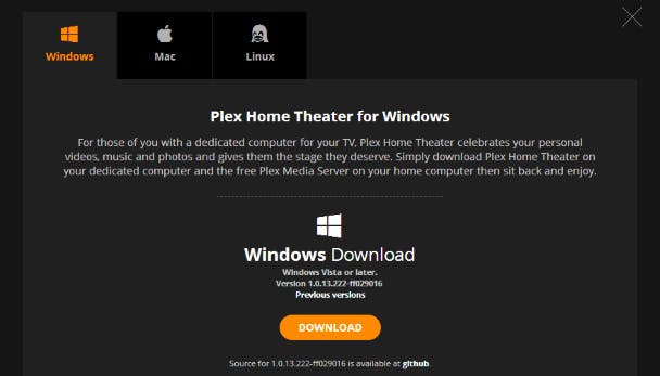 Middels het programma Plex Home Theater heb je volwaardige toegang tot alle bestanden die zijn toegevoegd aan Plex Media Server. Een groot voordeel is dat Plex Home Theater is geoptimaliseerd voor grote schermen. Ideaal voor het geval je een laptop of hometheater-pc (HTPC) aan een televisie hebt gekoppeld. Surf naar deze website en klik onder Plex Home Theater op DOWNLOAD. Er zijn versies beschikbaar voor Windows en OS X. Download en installeer de gewenste versie. Start de het programma vervolgens op.
