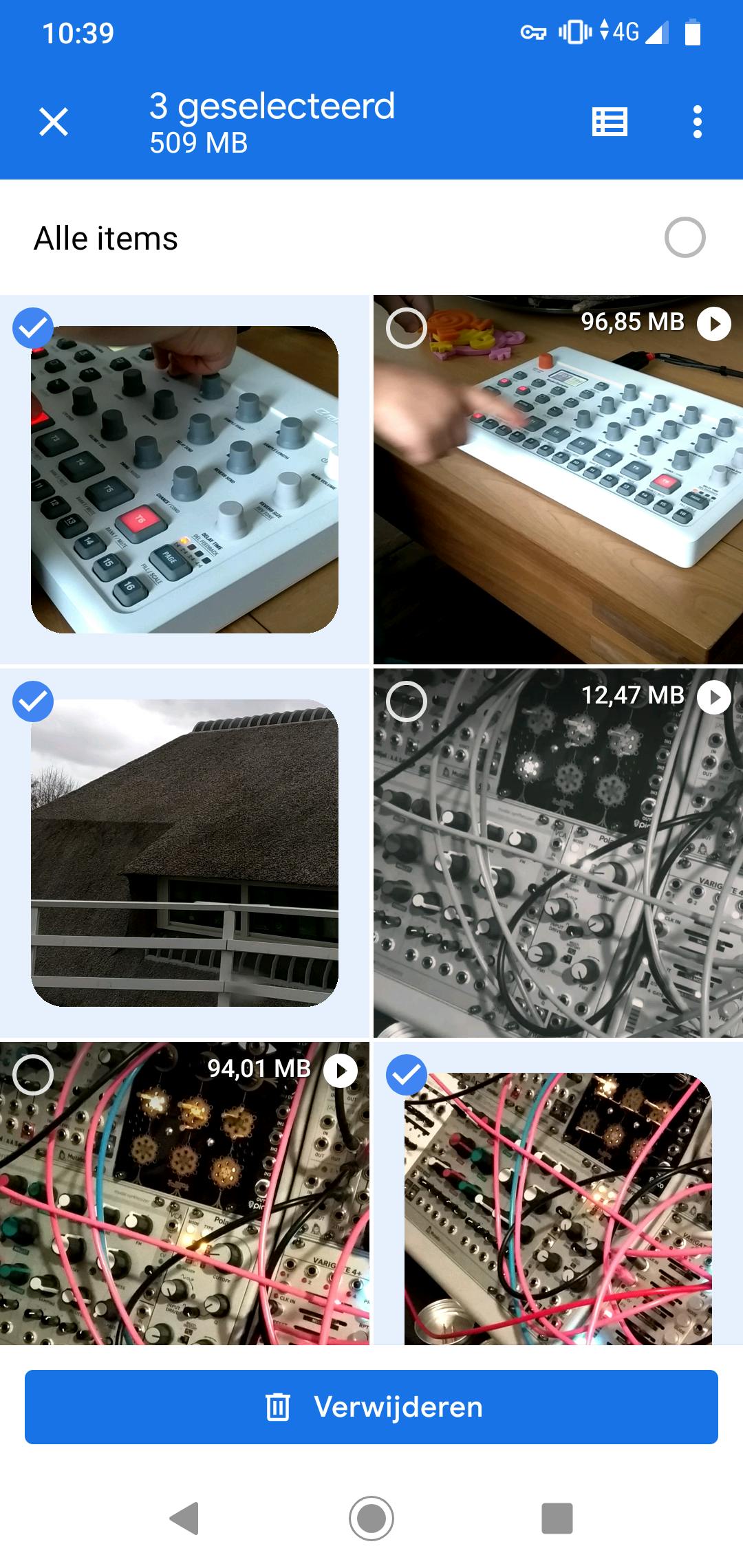 Andere bestanden die je wellicht van je apparaat kunt verwijderen, zijn downloads. Misschien heb je eens een pdf-bestand geopend en is deze automatisch naar je systeem gekopieerd? Om écht ruimte te besparen, kun je je grootste bestanden weggooien. Android heeft ze al voor je geselecteerd onder Grote bestanden. De meeste bestanden zullen video’s zijn die je met de interne camera hebt genomen. Je ziet boven de video of het bestand meteen hoeveel ruimte het bestand inneemt, op deze manier kun je snel vele MB’s of zelfs GB’s aan ruimte besparen.