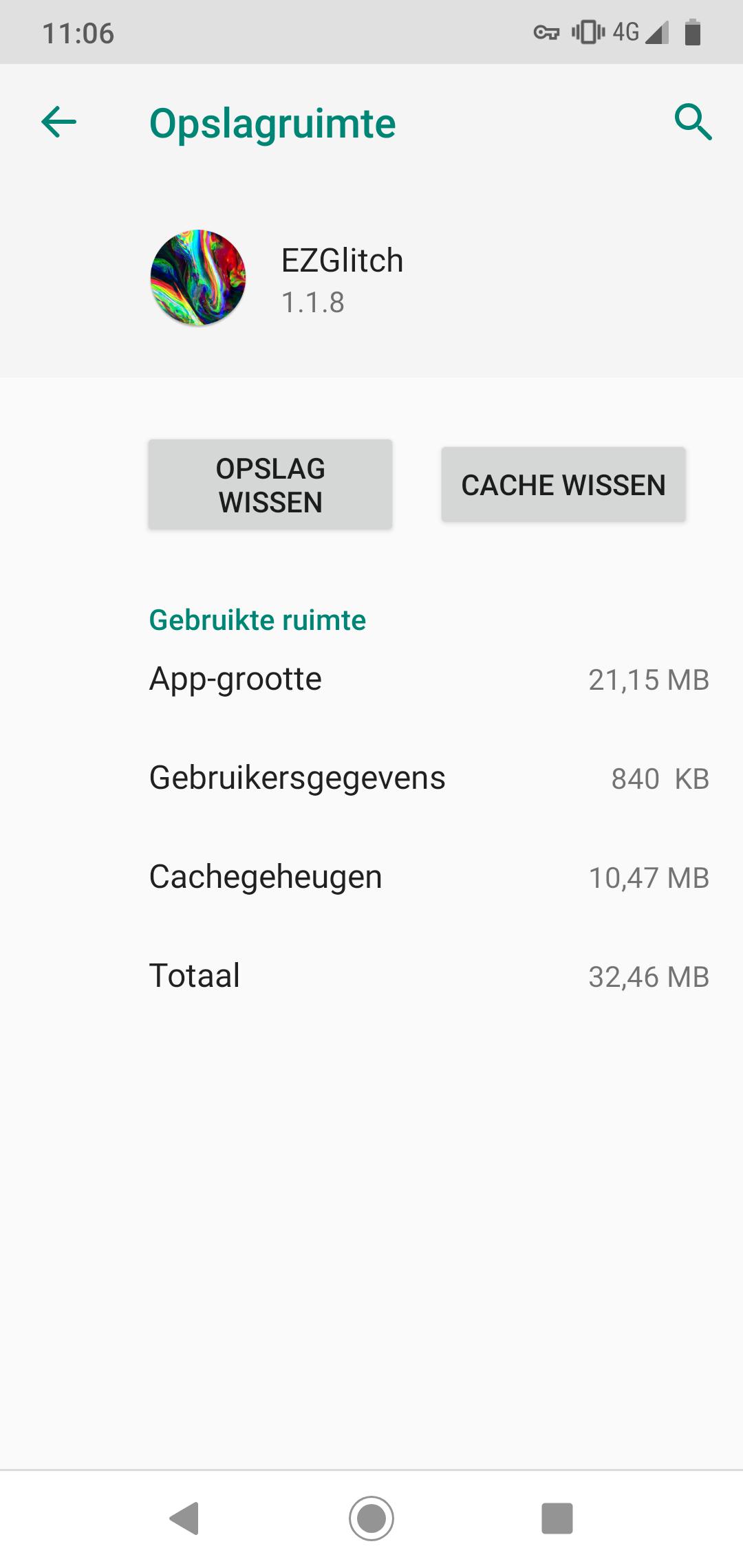 Nu is het de tijd om per app te bekijken of je nog meer ruimte kunt besparen. Ga terug naar het hoofdscherm en tik bijvoorbeeld op Foto’s en video’s. Je ziet nu alle apps die je voor foto- en videobewerking op je systeem hebt staan. Eronder zie je meteen hoeveel ruimte de app in beslag neemt. Tik erop om te zien waar deze ruimte voor wordt gebruikt. De bovenste waarde, App-grootte, heeft de app nodig om te kunnen functioneren. Het Cachegeheugen wordt gebruikt voor tijdelijke bestanden en kun je wissen door op Cache wissen te tikken. Je ziet dat het cachegeheugen nu meteen op nul wordt gezet. Je kunt ook voor Opslag wissen kiezen, maar dit betekent dat alle informatie van een app wordt verwijderd. Dit kunnen bestanden zijn die je met de app hebt gemaakt, maar ook account-instellingen en dergelijke. Wat er eigenlijk gebeurt, is dat de app nu wordt teruggezet naar de staat die het had toen je hem op je smartphone installeerde. Als je de app opnieuw start, moet je het ook weer systeemtoegang geven om bijvoorbeeld foto’s op je apparaat te mogen inzien of opslaan. Bevestig de actie en de Gebruikersgegevens staan nu ook op nul.