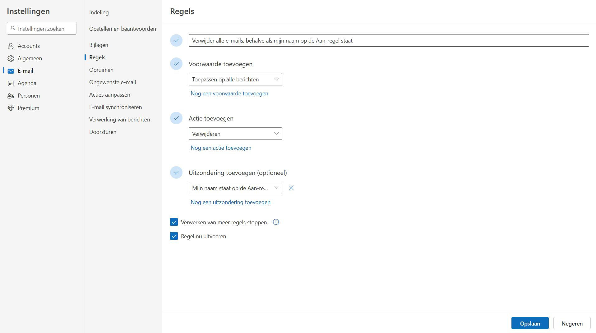- Verwijdercriteria stellen met berichtregels