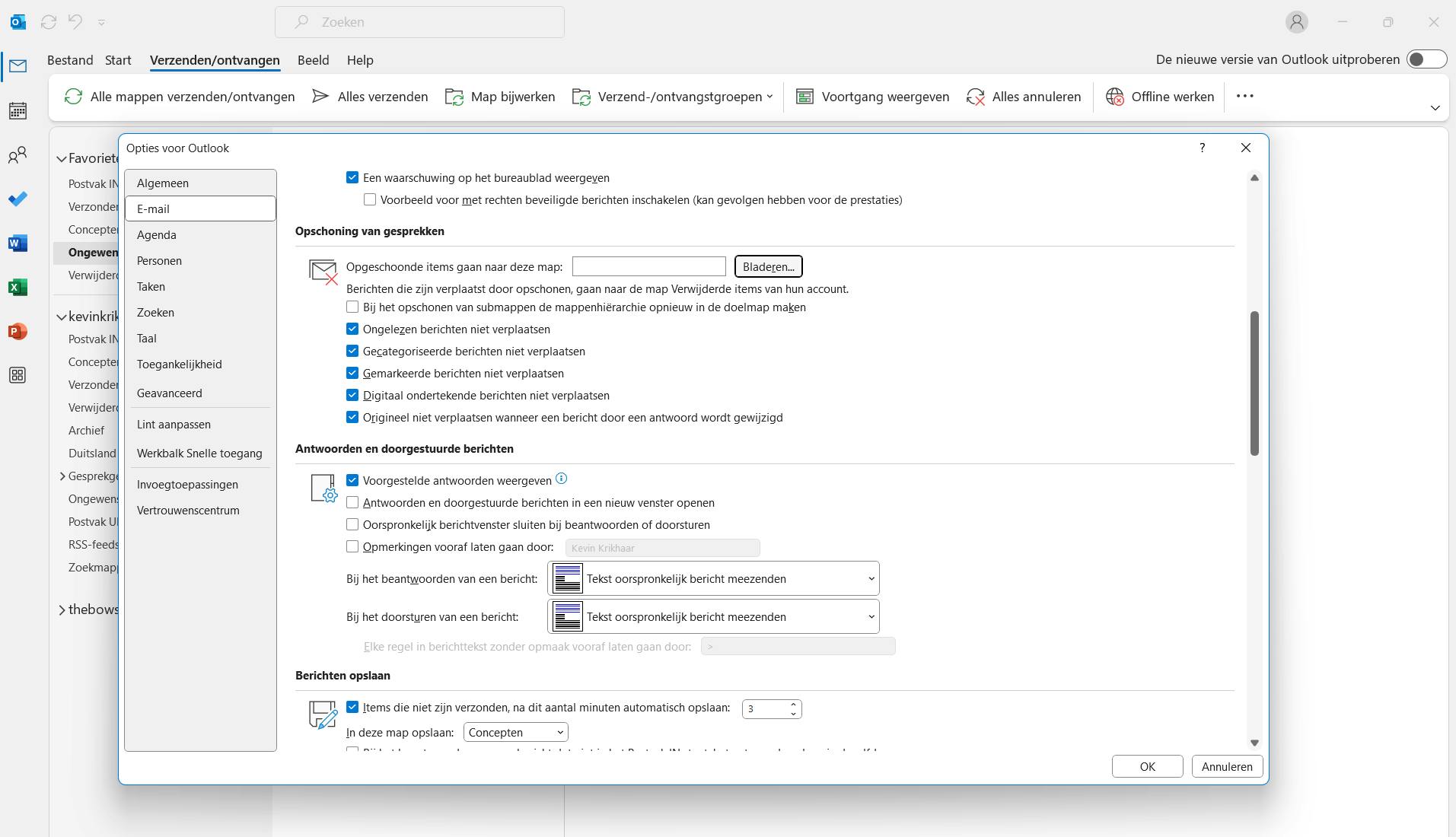 In de oude Outlook-versie kun je bijvoorbeeld de optie Opschoning van gesprekken gebruiken, die vind je onder het tabblad E-mail in de instellingen. Daar kun je verschillende soorten e-mails aanvinken die je wilt bewaren, bijvoorbeeld ongelezen, gemarkeerde en digitaal ondertekende mails. Als je met de rechtermuisknop drukt op een map en kiest voor Map opschonen (en dus niet Map leegmaken!), worden alle berichten in die map verwijderd, behalve de aangevinkte uitzonderingen.