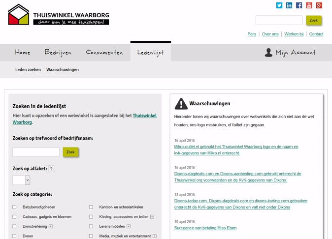 Het waarborg geeft alleen aan dat je klant bent bij een betrouwbare winkel die zich houdt aan de regels van goed ondernemerschap. Laat je overigens niet foppen door simpelweg het logo van het Thuiswinkel Waarborg op de site van een winkel, controleer ook op www.thuiswinkel.org of de webshop daar daadwerkelijk vermeld staat. Immers, een logo kan iedereen plaatsen. Er zijn echter nog veel meer keurmerken dan alleen het Thuiswinkel Waarborg. Voor een overzicht van keurmerken surf je naar ConsuWijzer.nl.