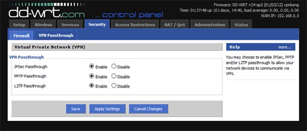 In deze masterclass maken we gebruik van de open source routersoftware dd-wrt. Waar je eerst naar op zoek moet is de optie VPN Passthrough, in dd-wrt vind je die onder de tab Security en dan VPN Passthrough. Schakel hier tenminste het protocol in dat je eerder hebt gekozen in de Synology vpn-server.