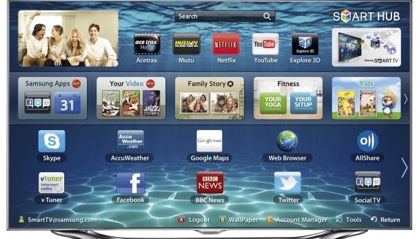 Na het opstarten vul je het e-mailadres en wachtwoord van je Netflix-account in. Je gebruikt de afstandsbediening om door het filmaanbod te scrollen. Waarschijnlijk komt de gebruikersomgeving je bekend voor, want die ziet er grotendeels hetzelfde uit als van de pc-versie. Netflix heeft apps ontwikkeld voor smart-tv's van LG, Panasonic, Philips, Samsung, Sony en Toshiba. Ook Pathé Thuis is beschikbaar voor diverse merken smart-tv's, namelijk Samsung, LG, Philips en Sony. Videoland werkt momenteel alleen op smart-tv's van Samsung, maar de ondersteuning wordt later nog uitgebreid.