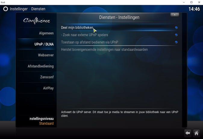Het populaire mediaprogramma Kodi gebruik je probleemloos als UPnP-mediaserver.