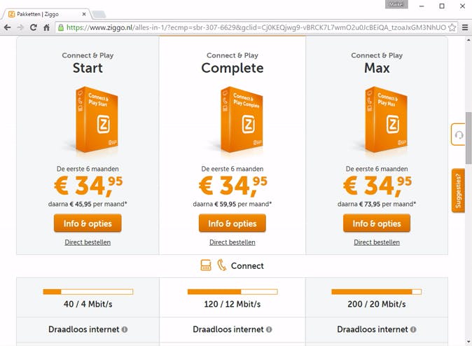 Het duurste internetabonnement bij Ziggo biedt een snelheid van maar liefst 200 Mbit/s.