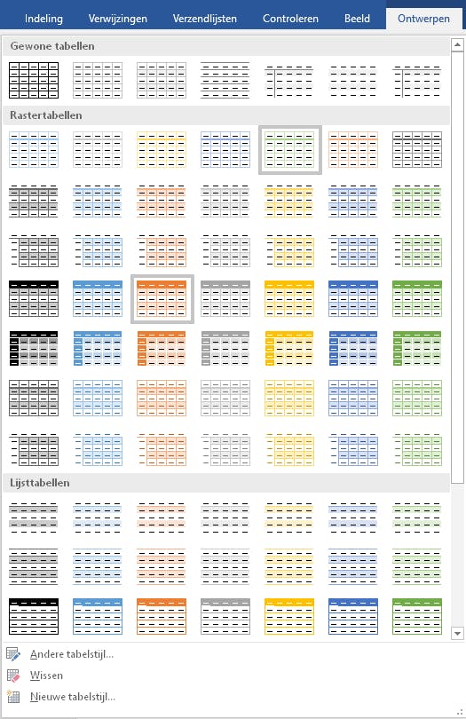 Het uiterlijk van de tabel kun je op het tabblad Ontwerpen aanpassen