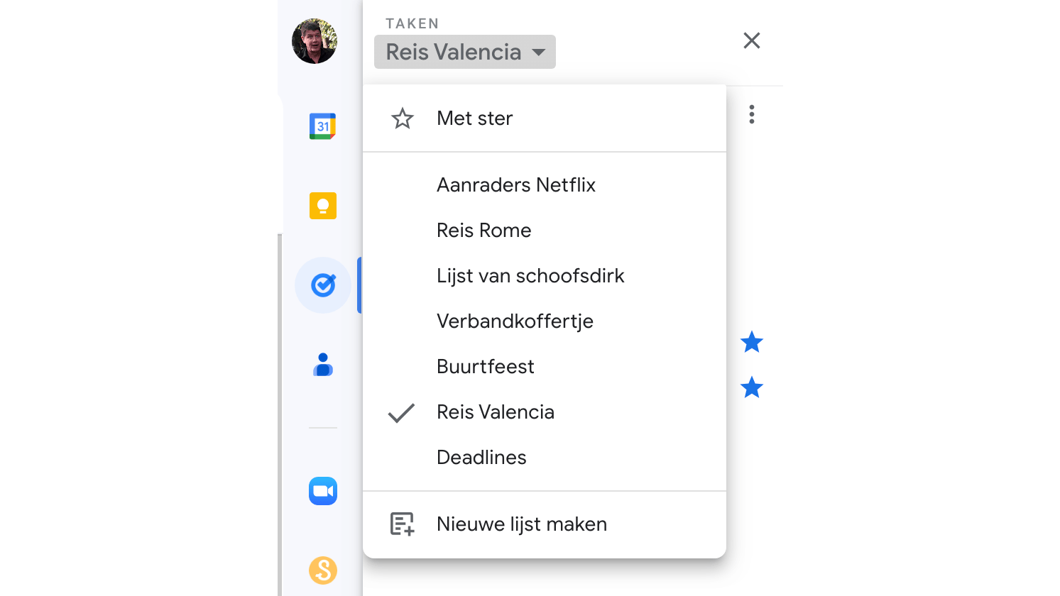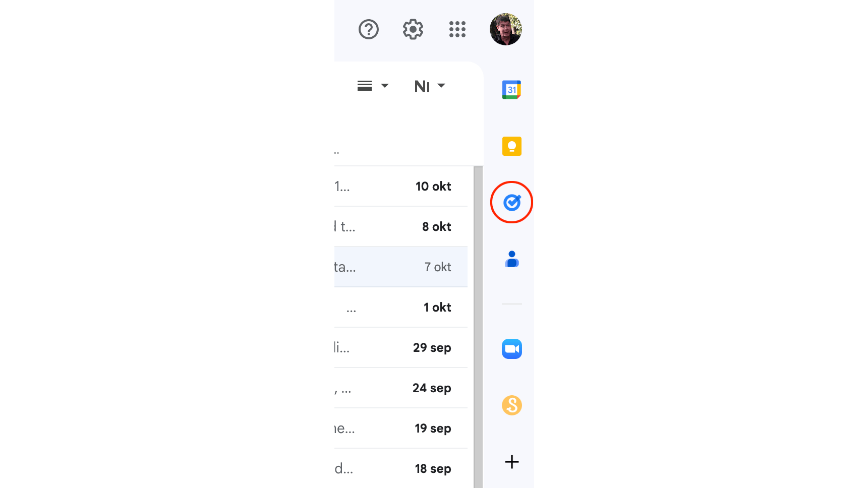 Het pictogram om Google Taken te openen, vind je in de rechtermarge.