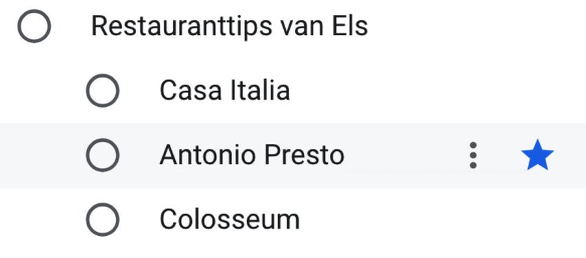 Pas wanneer je met je muis over een taak gaat, kun je een ster plaatsen.