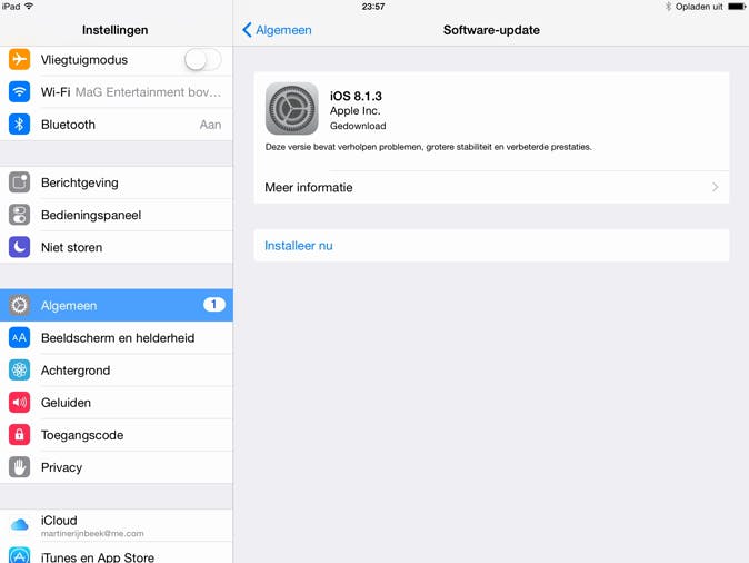 Een veelvoorkomende oorzaak van app crashes, is een verouderde versie van iOS, waarop de app niet goed wil werken. Het is dan (en eigenlijk altijd) verstandig om bij te werken naar de meest recente versie van iOS. Dit controleer je door te drukken op Instellingen / Algemeen / Software-update. Overigens kan het ook zo zijn dat er net een nieuwe versie van iOS uit is en dat de app daar nog niet op is afgestemd. In dat geval kun je vrij weinig doen. Lees ook: 10 must-have iPad apps voor scholieren.