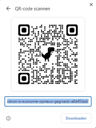 Je maakt van een weblink eventueel een QR-code. Bewaar deze code als afbeelding op de computer en deel hem bijvoorbeeld via e-mail of een chatbericht. Zodra jouw contactpersoon de code met een smartphone- of tabletcamera scant, opent de webpagina op het mobiele toestel. Ga in Chrome eerst naar een webpagina die je wilt delen. Klik in de adresbalk op het deelpictogram en kies QR-code. Via Downloaden sla je de code als png-bestand op.