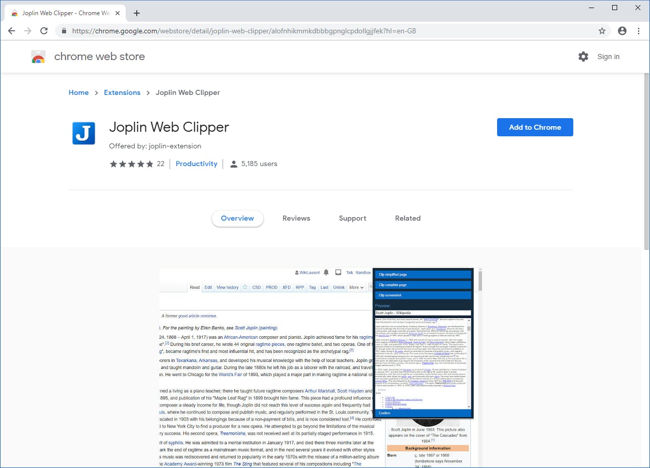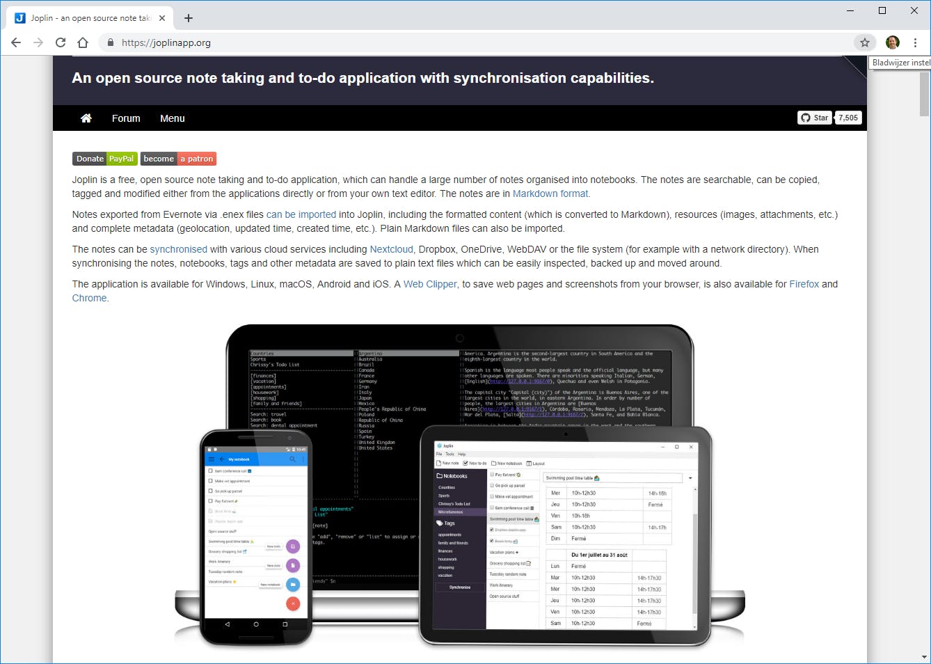 Uiteraard is het zinvol op Joplin ook op je smartphone of tablet te installeren. De apps voor Android en iOS zijn relatief eenvoudig maar werken goed. Ook een aanrader is de zogenaamde Web Clipper, een extensie voor Chrome en Firefox waarmee je webpagina’s en screenshots van je browser kunt bewaren in Joplin.