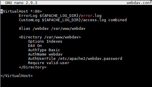 Maak nu een nieuw configuratiebestand voor WebDAV met: