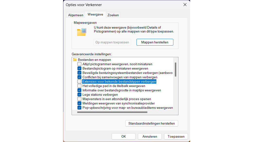 Zorg dat de bestandsextensies zichtbaar zijn.