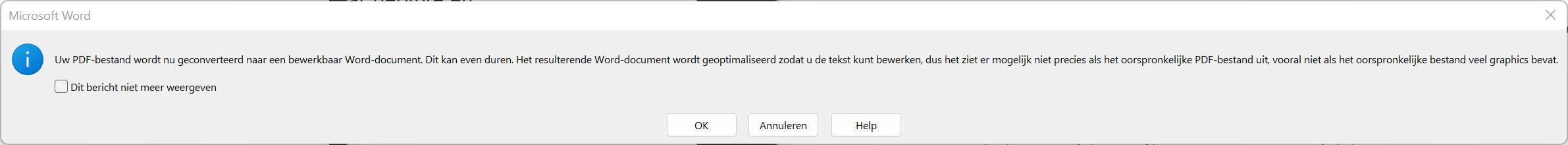 De werking is eenvoudig. Open Word en kies voor Bestand / Openen. Wijs vervolgens het bestaande pdf-document aan. Zodra het bestand wordt geopend, herkent Word dat het gaat om een pdf-document en verschijnt de melding dat het bestand wordt omgezet naar getypte tekst. Klik op OK. Klik hierna op Bewerken inschakelen. Je kunt het document nu aanpassen. Ook hierna kun je het aangepaste bestand weer opslaan als pdf. Kies Bestand / Kopie opslaan en kies het pdf-bestandsformaat.