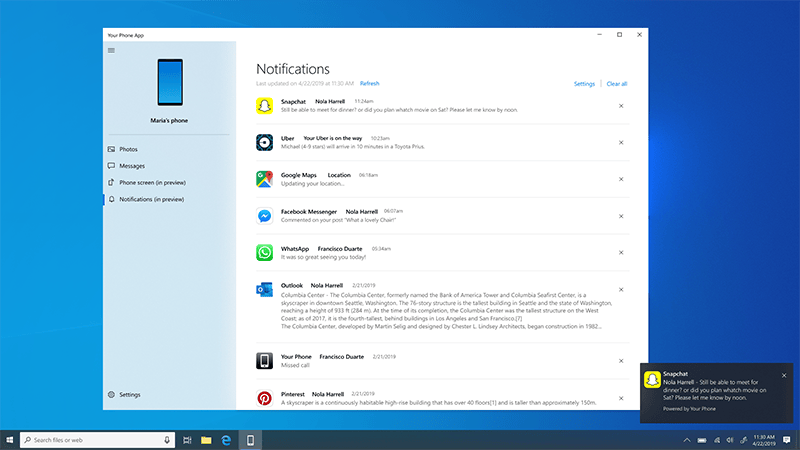 Binnenkort krijgt Windows 10 een optie om smartphone-meldingen op je pc te ontvangen. Het synchroniseren van notificaties verloopt dan via de Your Phone-app, in het Nederland 'Begeleidende app voor Jouw telefoon' geheten.