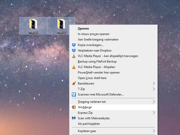 Selecteer de mappen die je wilt vergelijken.