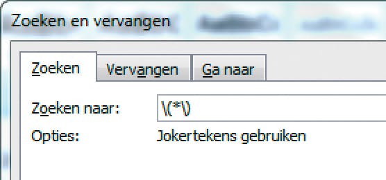 Ook het welbekende *-teken kan ingezet worden als jokerteken. In dat geval is de betekenis veel ruimer, want het sterretje geeft aan dat nul of meer karakters aan de zoekopdracht moeten voldoen. *and met de optie Jokertekens gebruiken ingeschakeld levert bijvoorbeeld het woord band op, maar ook fietsband of geland op. Ofwel: alles voor het sterteken is goedgekeurd, alleen het deel achter * dient te bestaan uit de opgegeven tekst. Het sterteken is ook handig om tekst tussen haakjes te vinden. Zoek in dat geval naar \(*\). Ziet er wat ingewikkeld uit, maar het wordt al duidelijker als u bedenkt dat normaal gesproken de tekens ( en ) ook jokertekens zijn. Door hier nu een \ voor te zetten ziet Word ze weer als een normaal teken. Ofwel: er wordt gezocht naar (*) wat zoveel betekent als: alles tussen haakjes.