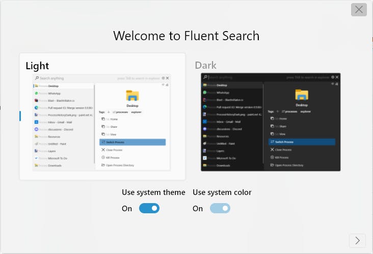Je downloadt de gratis app op www.fluentsearch.net, via Download / EXE Installer. Installeer de tool en start die op. De eerste keer kun je onder meer het thema instellen en Send crash diagnostics in- of uitschakelen. De app is meteen actief op de achtergrond en haal je naar boven met Ctrl+Alt.