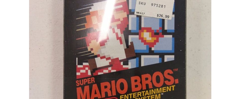 Zo'n beetje iedereen met een NES-console had de originele Super Mario Bros. in huis, dus op de verzamelaarsmarkt is er van schaarste geen sprake. Maar in dit specifieke geval wel, omdat de achterzijde van het doosje een haakje heeft waarmee het spel in een winkel opgehangen kon worden. Daarvan bestaan er nog maar een paar, dus schoot de prijs omhoog.