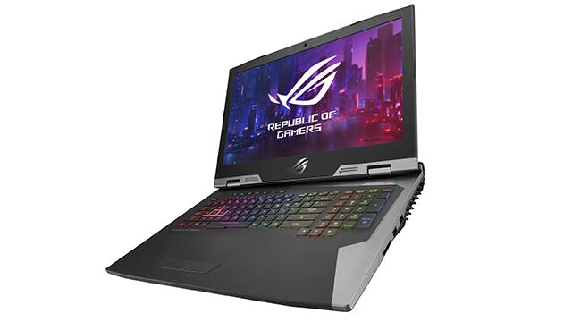 ASUS heeft met zijn Republic of Gamers-lijn een uitstekende reputatie, dus mag een laptop uit deze reeks natuurlijk niet in dit overzicht ontbreken. De G703GX-E5001T beschikt over de processor Intel Core i7-8750H, die vanuit de fabriek al is overgeklokt. De zes rekenkernen halen in turbomodus een kloksnelheid van 4,1 GHz (normaal 2,2 GHz). Verder is er 32 GB ddr4-geheugen geïntegreerd.