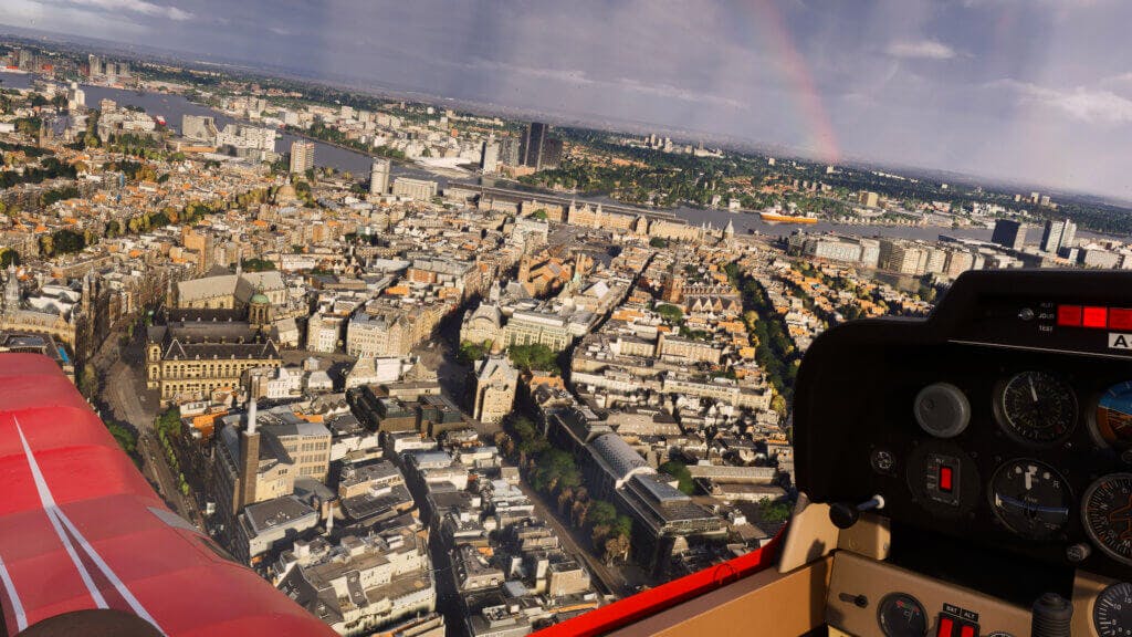 Asobo legt daarbij hogere resolutie texturen over het zogenaamde triangulated irregular network (TIN), wat er voorheen al lag. Het terrein wordt niet enkel driedimensionaal uitgedrukt: gebouwen en bezienswaardigheden worden ook nog eens netjes ‘beschilderd’ met details. Boven bijvoorbeeld Amsterdam valt nu op hoe de grachtenpandjes, net als in het echt, allerlei uiteenlopende raamkozijnen en dakkappeletjes hebben.