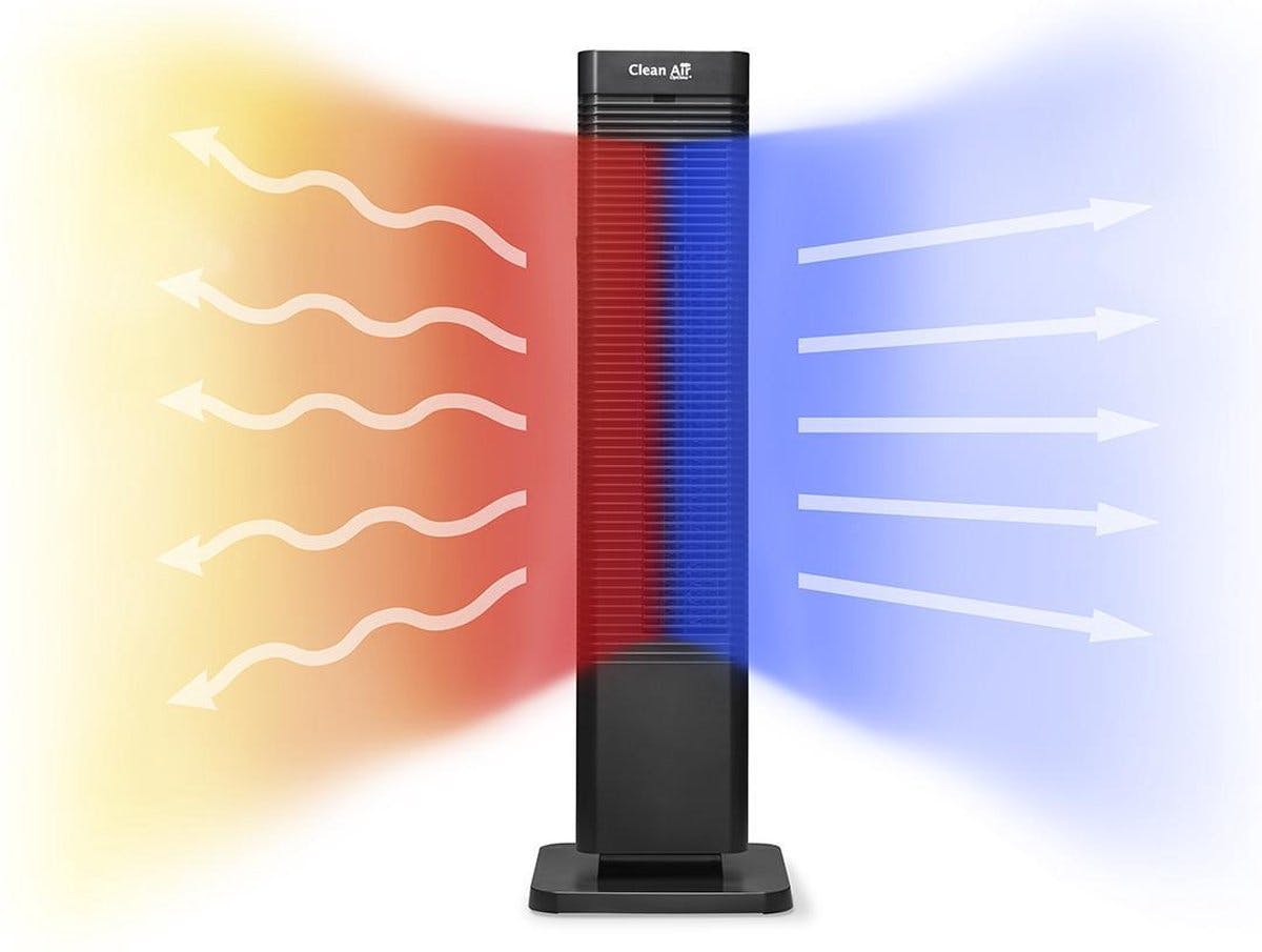 De Clean Air Optima CA-904B gebruik je tijdens alle seizoenen. Deze luxe ventilatorkachel kan namelijk zowel verwarmen als koelen. Een pluspunt is het grote bereik, want je gebruikt het apparaat in kamers met een maximale oppervlakte van veertig vierkante meter. Voor het efficiënt verspreiden van warme of koele lucht heeft de behuizing een draaicirkel van tachtig graden. De bovenzijde bevat een display met een bedieningspaneel. Stel hierop de temperatuur in en activeer eventueel de timerfunctie. De fabrikant levert verder een compacte afstandsbediening mee, zodat je ook vanuit je luie stoel de gewenste temperatuur kunt kiezen. In de behuizing bevindt zich een stoffilter. De veelzijdige Clean Air Optima CA-904B zorgt daarmee dus ook nog eens voor schonere lucht.