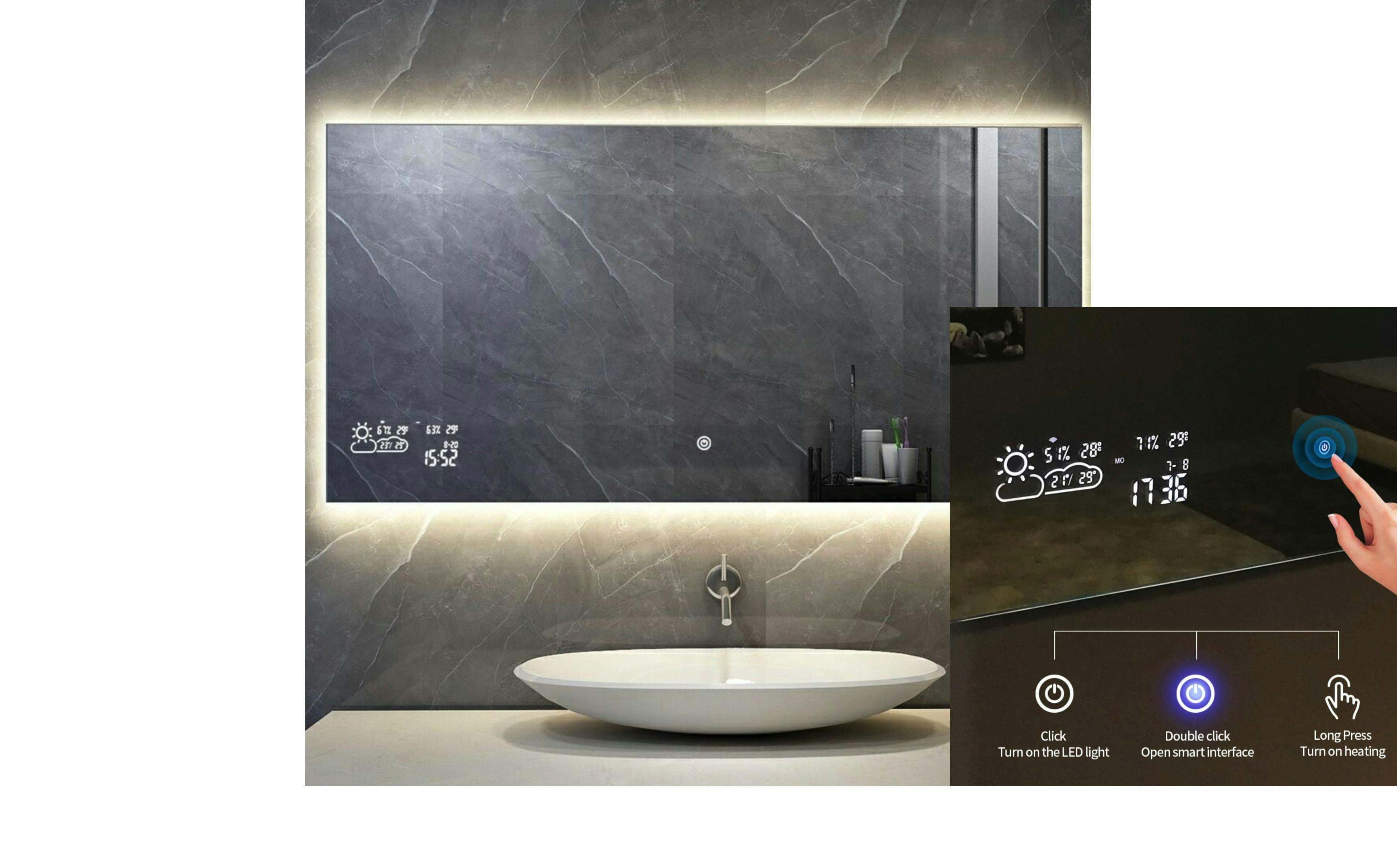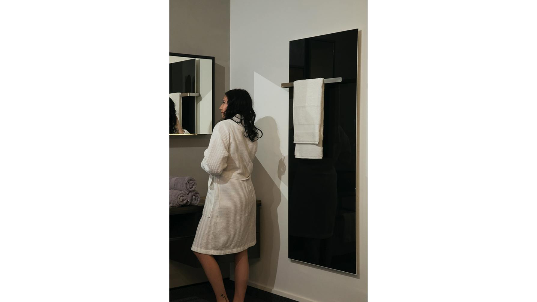 Deze infraroodspiegels aan verschillende breedtes worden meestal gebruikt in badkamers. Ze combineren dus spiegelen en verwarmen. Het gaat om betaalbare spiegels (tussen pakweg 220 en 380 euro) met ingebouwde infraroodverwarming van 200 watt tot 500 watt. In vergelijking met bijvoorbeeld radiatoren of vloerverwarming warmen deze panelen snel op en verbruiken ze relatief weinig energie. De spiegels hebben ook een smart-functie. Op de spiegel zit een touch-knop om de warmte-uitstraling onmiddellijk te activeren zodat de badkamer binnen enkele minuten warm is. Bovendien is de spiegel voorzien van een wifi-ontvanger, sfeerverlichting en datum- en tijdaanduiding. Voor een badkamer heb je 60 watt per m3 nodig, voor een slaapkamer mag je rekenen op 30 watt per m3.