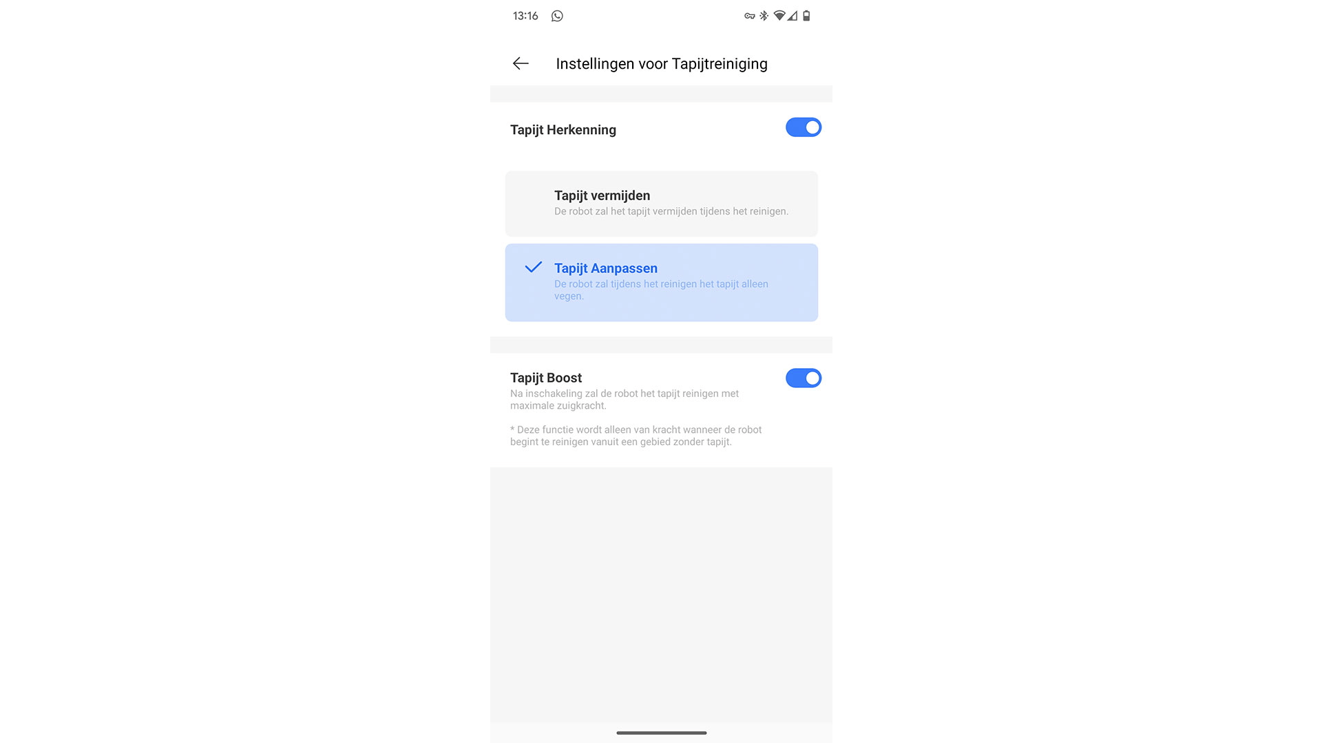 Heb je vooral een gladde vloer met hooguit een normaal laagpolig tapijt, dan is deze automatische herkenning en aanpassing niet echt noodzakelijk. Heb je wel een lastig tapijt in combinatie met een gladde vloer, dan kun je op een simpeler exemplaar ook altijd handmatig instellen op maximaal vermogen. Dat kost alleen wel meer energie en produceert meer lawaai dan noodzakelijk is.