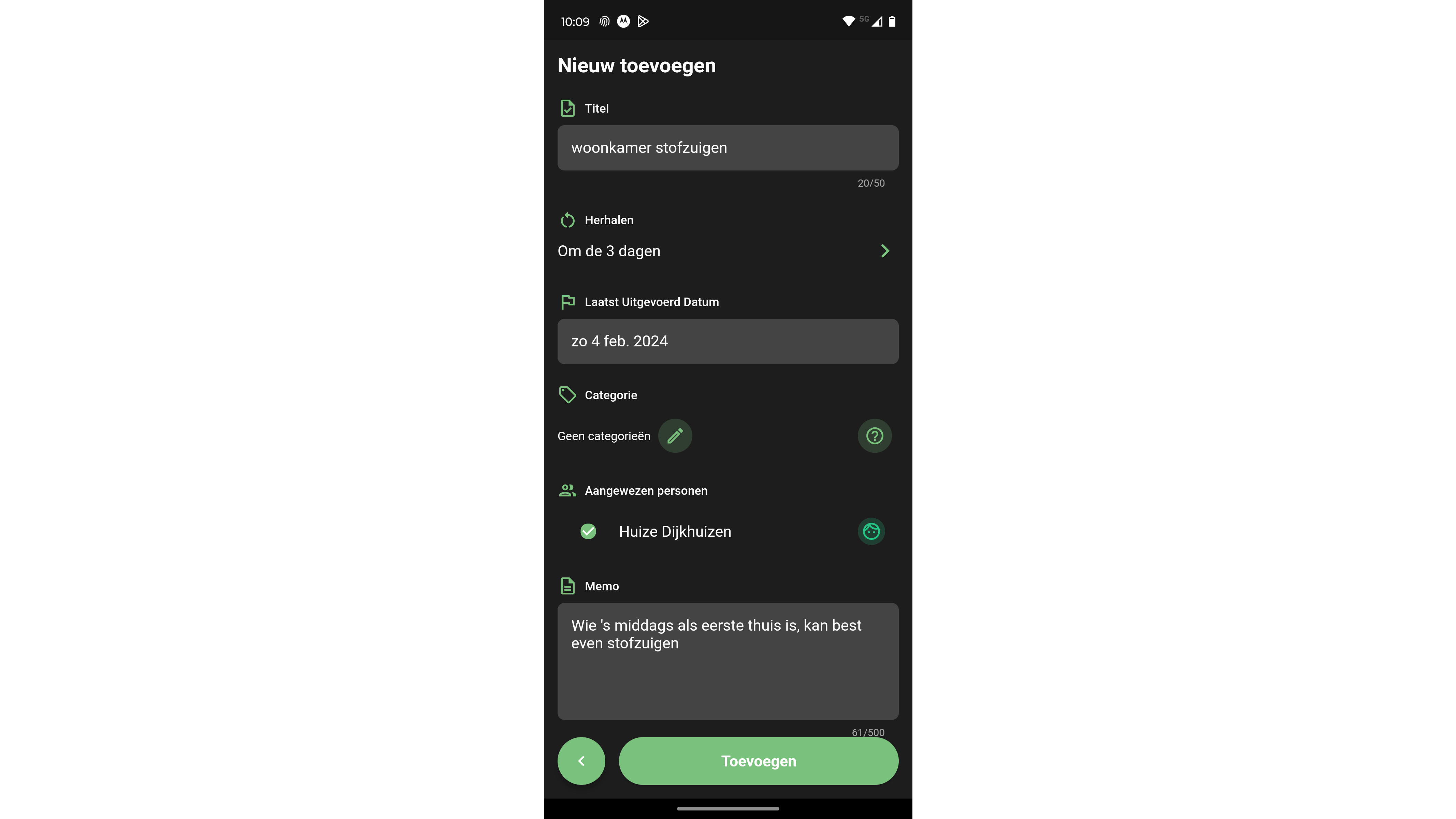 Huishouden & Opruim app bevat honderden geselecteerde klussen. Kies eerst een ruimte, zoals ‘Badkamer’ of ‘Keuken’. Via Taken toevoegen selecteer je de belangrijkste karweitjes. Denk aan de oven reinigen, spiegels afvegen en planten water geven. Bepaal bij elk item binnen welk tijdsbestek je het wilt uitvoeren. Deze app stuurt dagelijks op een zelfgekozen tijd een pushbericht met de klussen die voor die dag zijn gepland. Met de betaalde versie besteed je taken eventueel uit aan andere gezinsleden. Dat kost jaarlijks 19,99 euro.