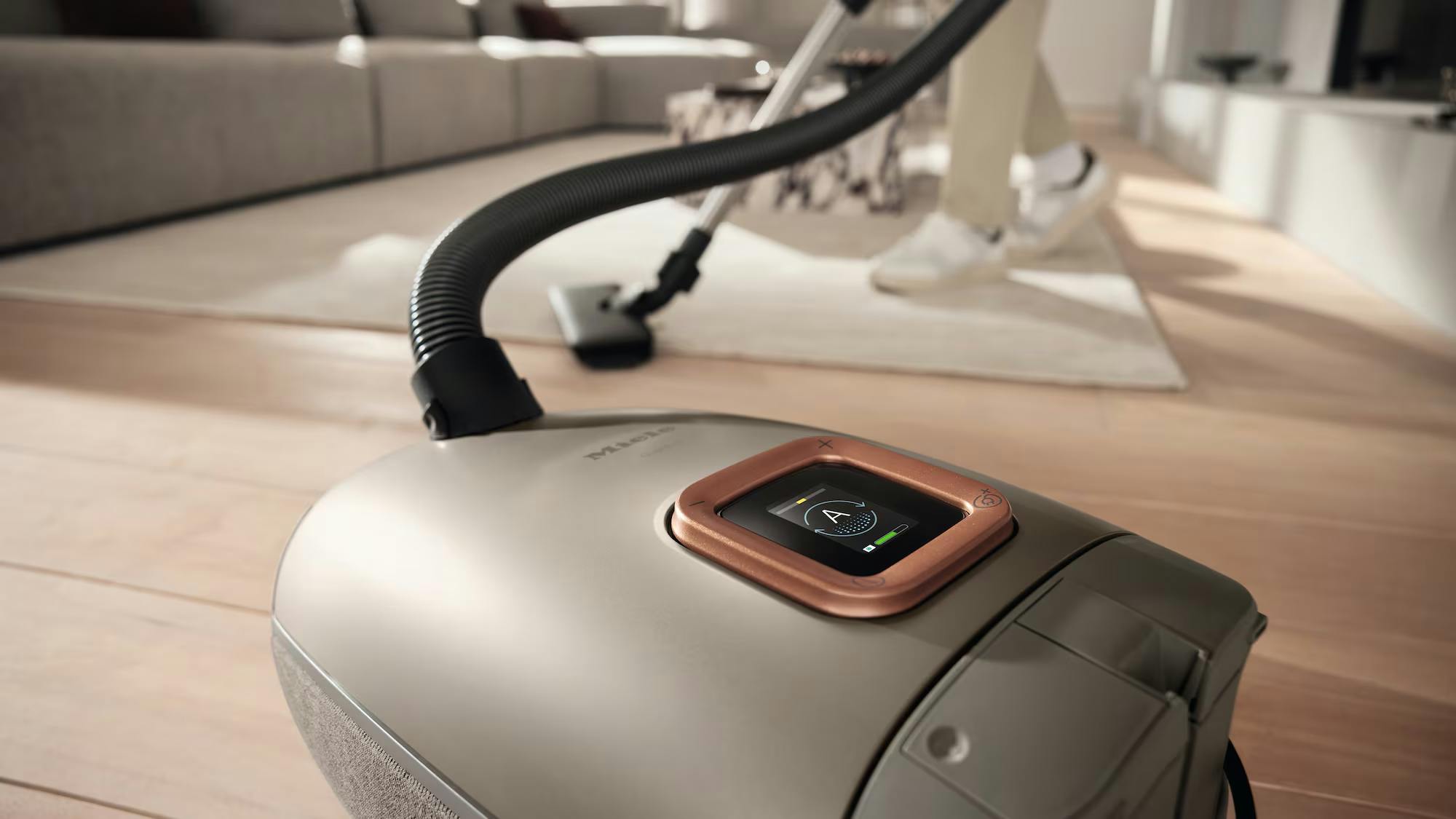 Voor wie nóg een stap verder wil gaan, is er de Guard L1 Comfort. Deze luxere uitvoering voegt enkele premium extra's toe. Het geïntegreerde LCD-kleurendisplay toont in één oogopslag de reinigingsmodus, de vullingsgraad van de stofzak en de status van het uitblaasfilter. Zo heb je altijd direct inzicht in de prestaties van je stofzuiger. Daarnaast ondersteunt de L1 Comfort Miele@home, waarmee je het apparaat via wifi kunt verbinden met je smarthome-netwerk. Bediening via app, spraak of slimme automatisering? Met Miele is het slechts een kwestie van instellen.