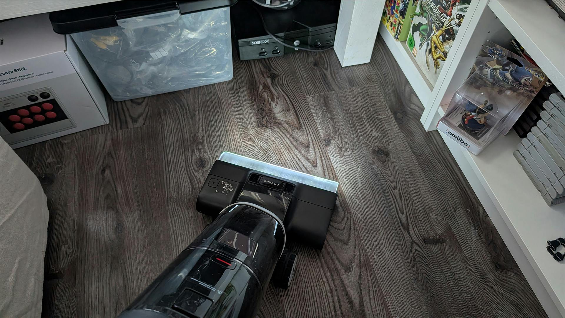 In de basis zitten er weinig verschillen tussen de Dreame H14 Pro en H13 Pro die we eerder in 2024 getest hebben. Dat betekent dat je op een hoop fijne dingen kunt rekenen waar de voorganger goed in is. Denk dan aan een stevige zuigkracht (van 18000 Pascal), grondige en snel roterende dweilkop en een stofzuigermond die voorzien is van led-verlichting. Daardoor maakt het weinig uit wanneer je besluit het apparaat te gebruiken. Toegegeven, de laser op een moderne Dyson-steelstofzuiger werkt beter, maar het is fijn dat de verlichting er is.
