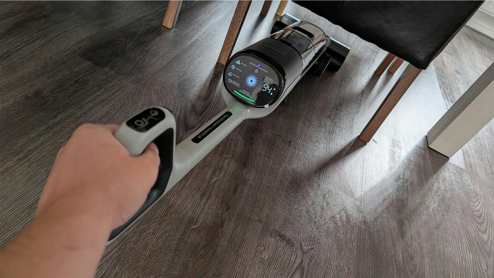 Verder is het goed om te weten dat de Dreame H14 Pro eveneens beschikt over vier standen. We hebben de steelstofzuiger voornamelijk op de automatische stand gebruikt, maar je kunt hem ook instellen op Suction, Ultra en een eigen instelling. De batterijduur bedraagt – net als bij de voorganger – net geen veertig minuten. Hoewel dat vrij kort is, zal het voor een gemiddeld huis in Nederland genoeg zijn om de grond schoon te krijgen. Na ongeveer 50 vierkante meter schoon te hebben gemaakt, heeft de H14 Pro net iets meer dan dertig procent van de accu gebruikt.