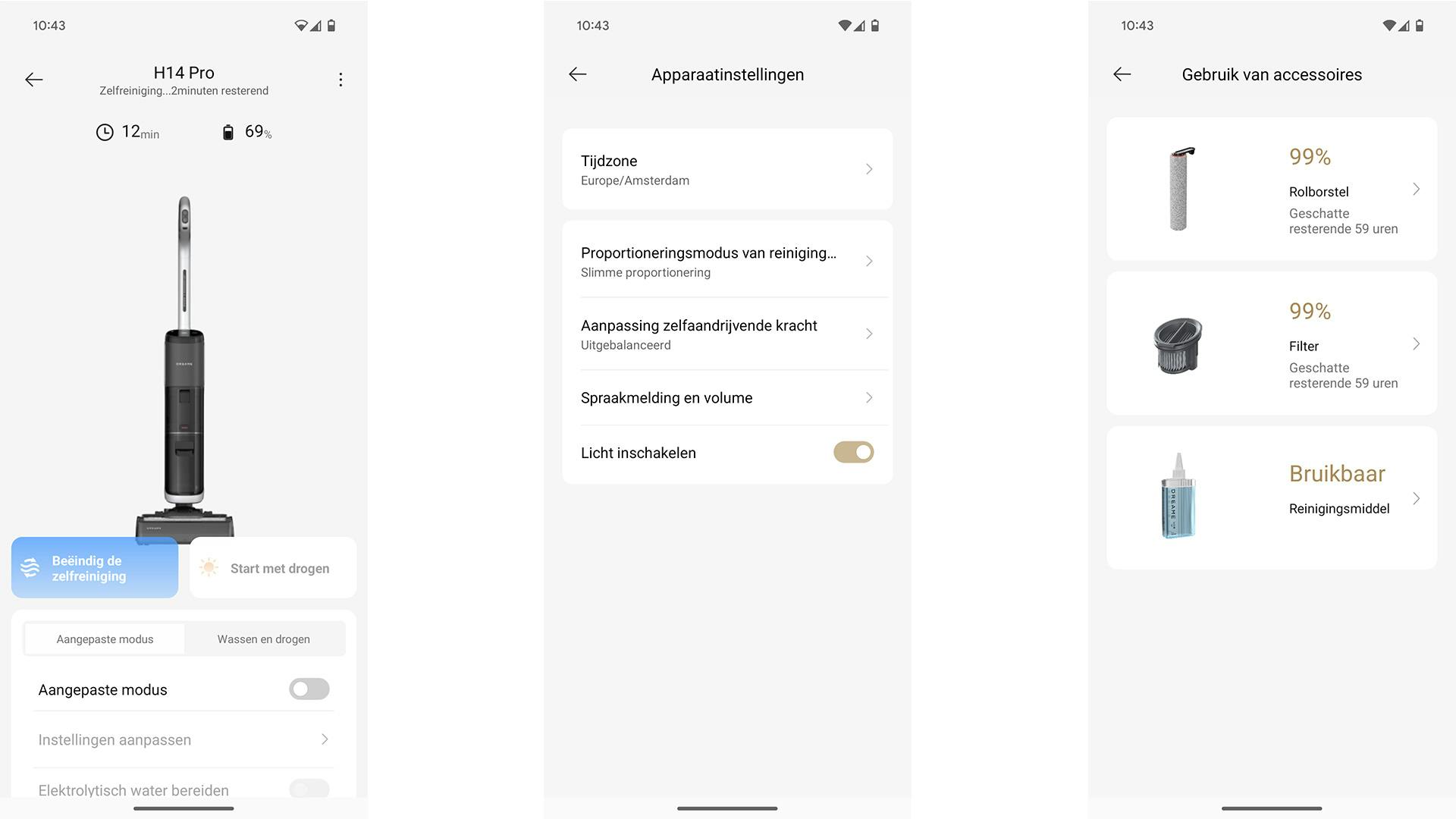De andere grote toevoeging is de koppeling met de Dreame-app. In eerste instantie dachten we: waarom zou je dat willen doen voor zo'n (eigenlijk) simpel huishoudelijk apparaat, zonder echte intelligentie? En hoewel we het ons nog steeds een beetje afvragen, zijn we toch blij met dit resultaat. Want je kunt bijvoorbeeld de schoonmaak- of droogmodus op afstand in- en uitschakelen, voor als je dat vergeten bent. Ook krijg je inzicht in hoe het ervoor staat met de sensoren en onderdelen, waardoor je precies weet wanneer er iets aan vervanging toe is.