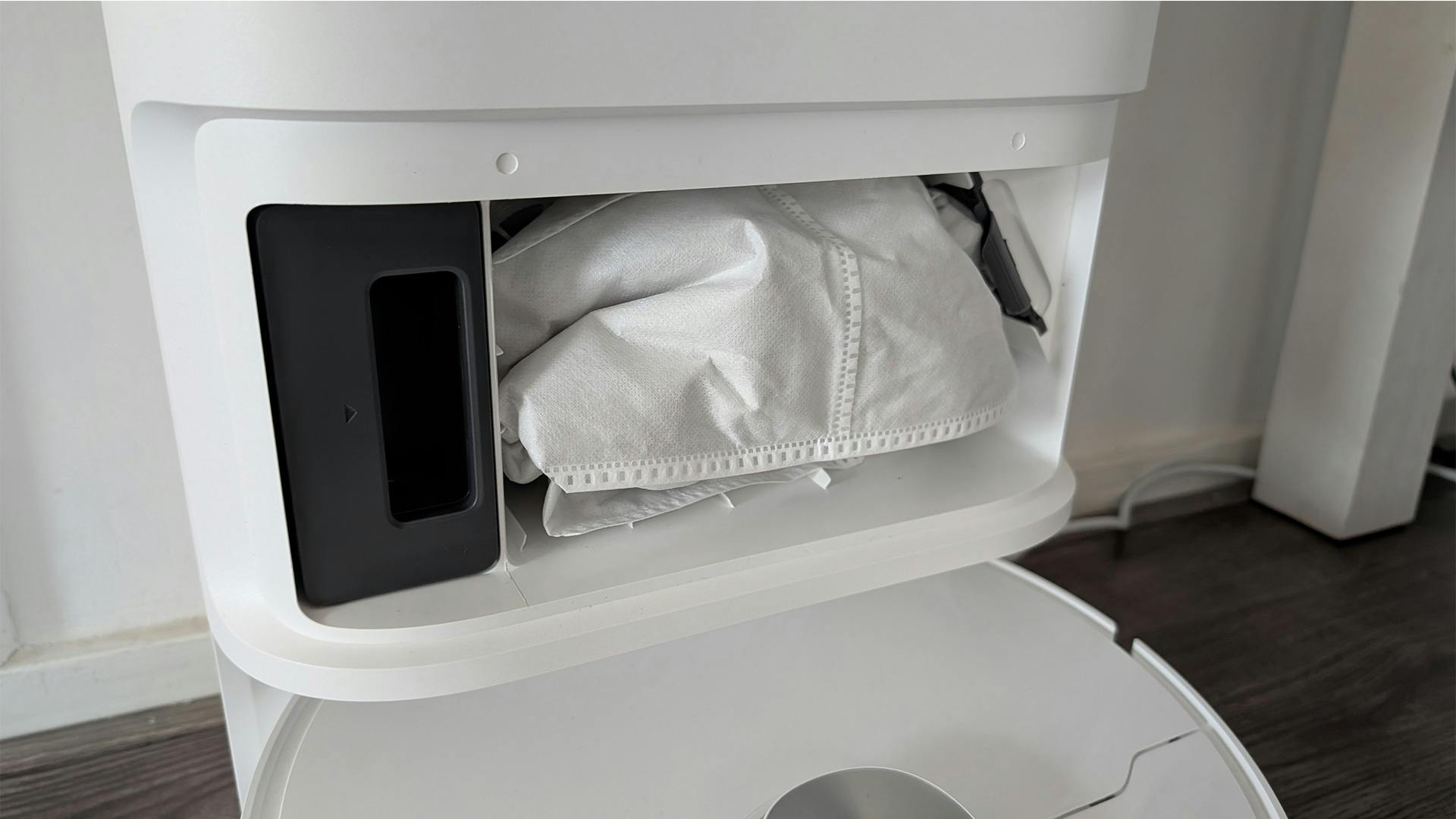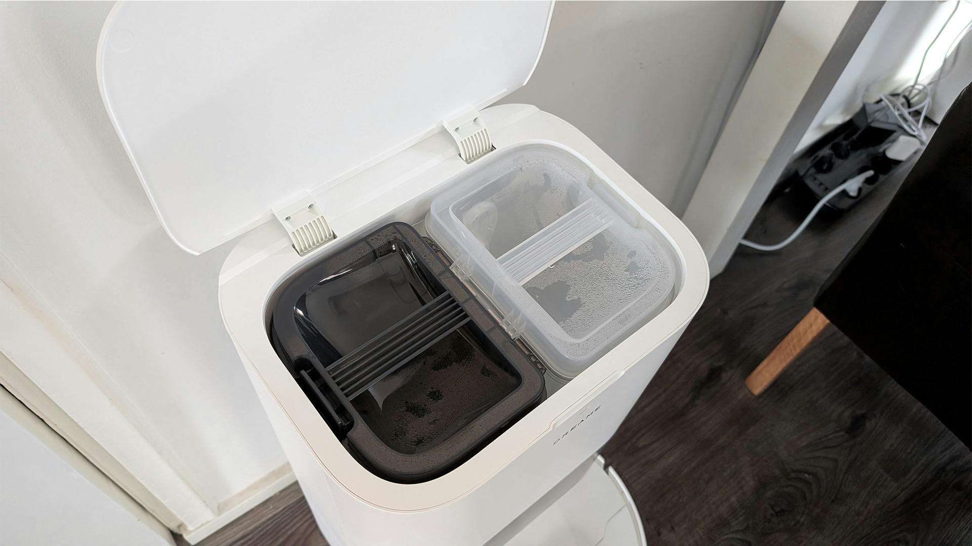 Gelukkig heeft het basisstation wel een waardevolle upgrade gekregen in de vorm van een apart zeepbakje. Naast een bak voor schoon en een bak voor vies water, heb je nu een aparte bak waar je vloerreiniger in kunt stoppen. Dreame raadt uiteraard zijn eigen schoonmaakmiddelen aan, maar niets staat je in de weg zelf een middel uit te kiezen.