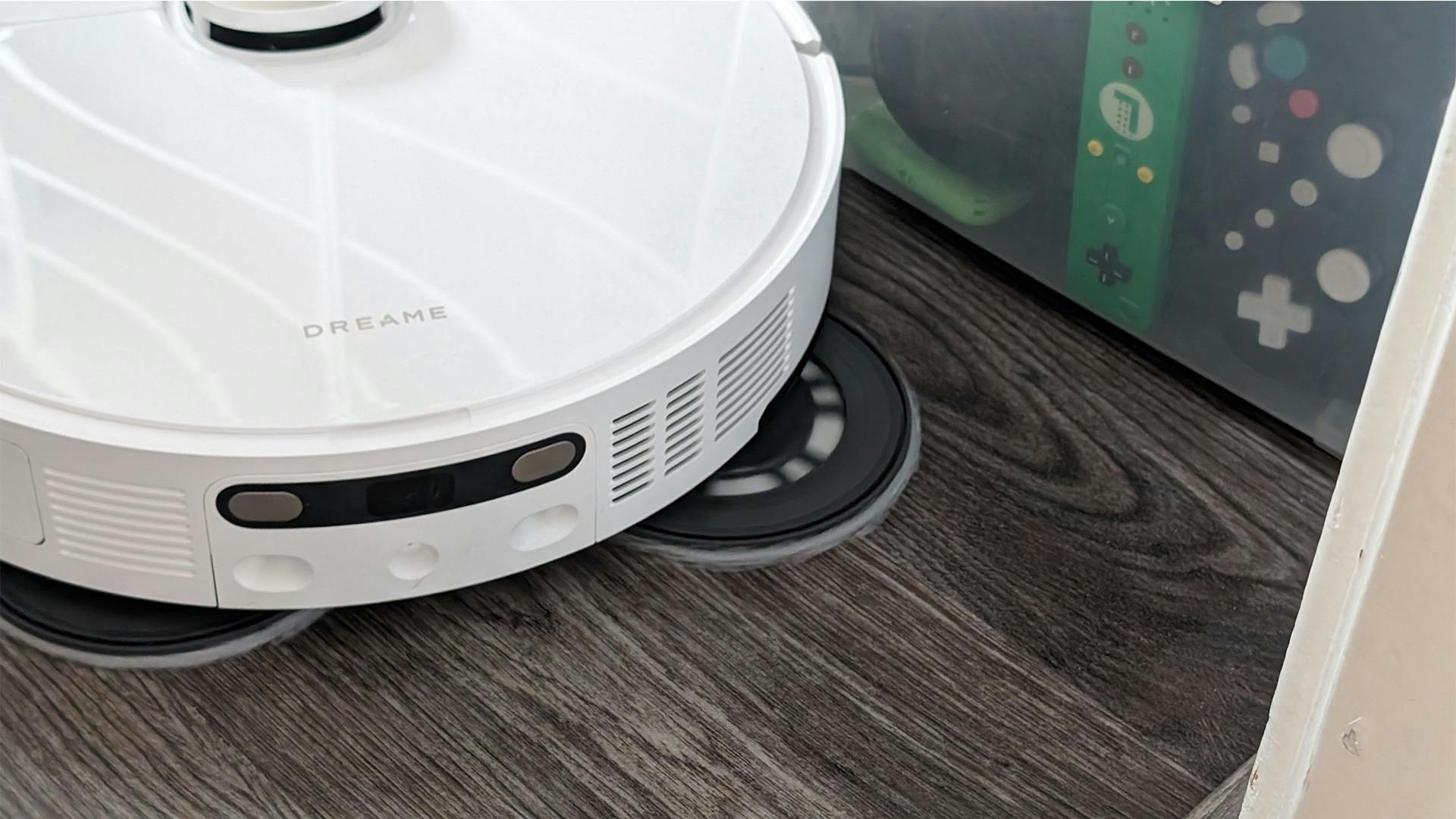 Daarnaast kan één van de twee dweilpads naar buiten schuiven wanneer dat nodig is. Dit biedt bijna dezelfde voordelen als de uitschuifbare borstel. Niet alleen kan hij daardoor een grote deel van een hoek meepakken, ook kan hij dichter op de muur, bedframe, kast of een plint dweilen. Aanvankelijk ontstaat er daardoor wel een soort vergeetstreep tussen de dweilpads. Je ziet dan op de grond twee natte strepen, met een droog pad in het midden. Maar zodra de Dreame X40 Ultra Complete z’n ronde langs de randen gedaan heeft, pakt hij de droge plekken alsnog mee.