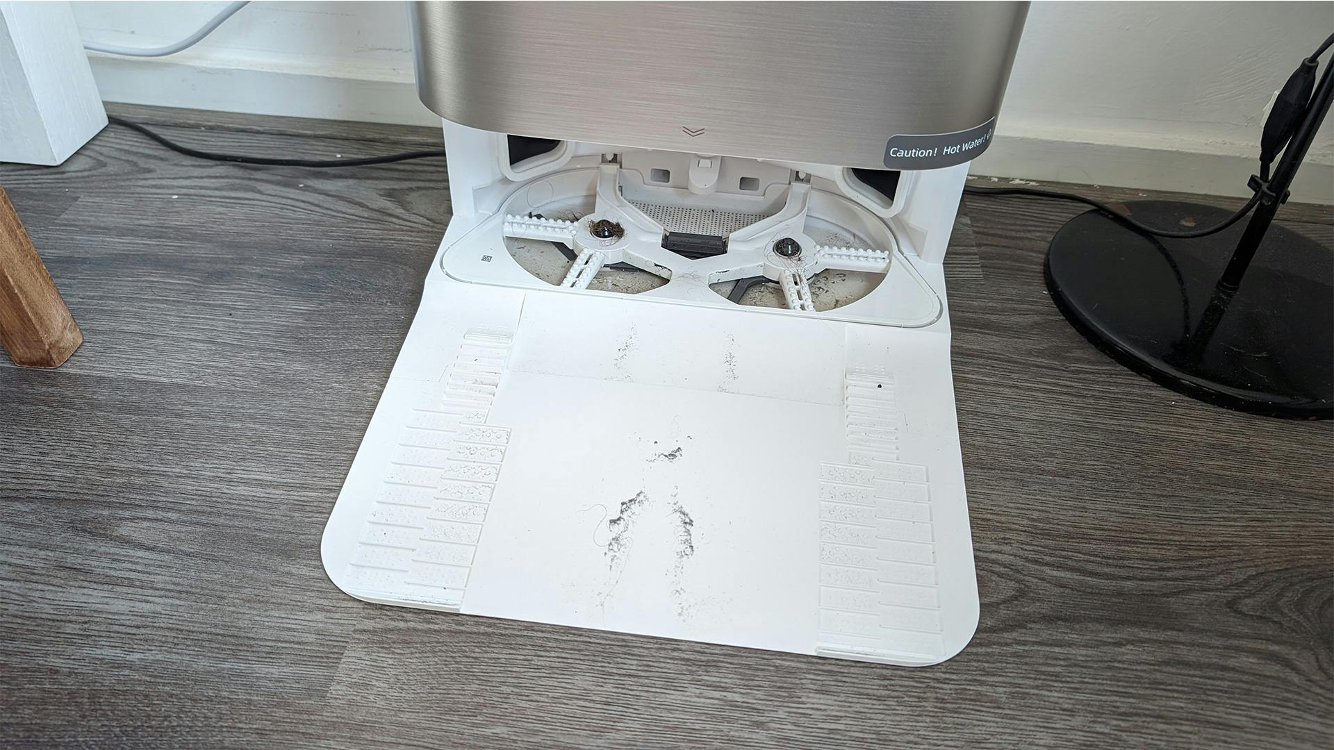 De Roborock heeft verder een minder goed dweilsysteem. Net als bij Roomba betreft het een natte lap die achter de stofzuiger getrokken wordt. De basis aldaar kan hem dan wel weer schoon- en droogmaken. Maar wat ons betreft bereiken we betere dweilresultaten met roterende dweilpads. Alleen de meest hardnekkige vlekken, zoals vetvlekken rondom het gasfornuis, blijven op de grond achter. En bij die lappen hebben we vaak het idee dat ze niet echt schoonmaken en zeker niet kunnen schrobben, maar eerder het vuil met zich meeslepen.