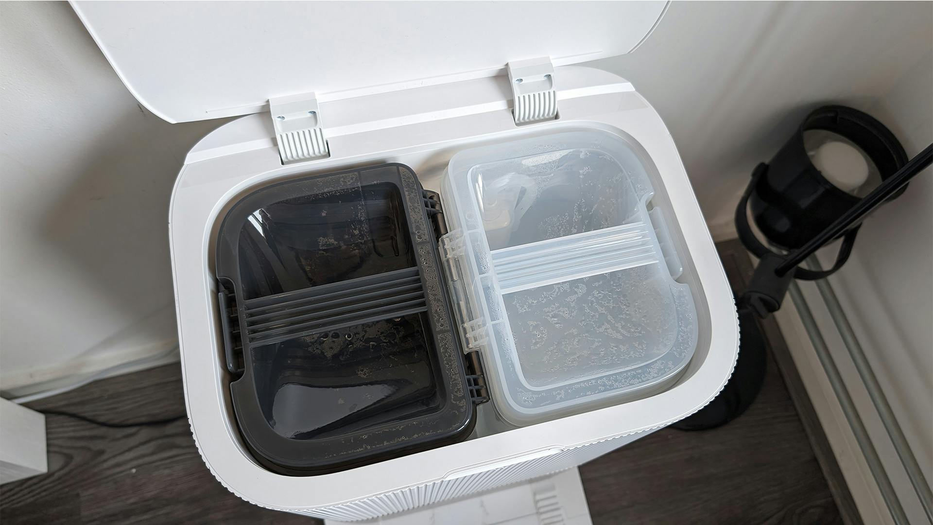 Verder is er een bak die het vieze water opvangt. Hoe vaak je die moet legen, is afhankelijk van hoe vaak je dweilt en hoeveel water je dan gebruikt. We hebben de Dreame X40 Ultra Complete gedurende een maand gebruikt en hebben gemerkt weinig omkijken naar de robot te hebben. De basis moet je zo nu en dan wel even met een vochtig doekje schoonmaken, en uiteraard moet je de watertanks in de gaten houden, maar that’s it. Het systeem regelt zelf van alles: de tank in de stofzuiger volgooien en leegtrekken en ook de dweilpads onderop schoon- en droogmaken.