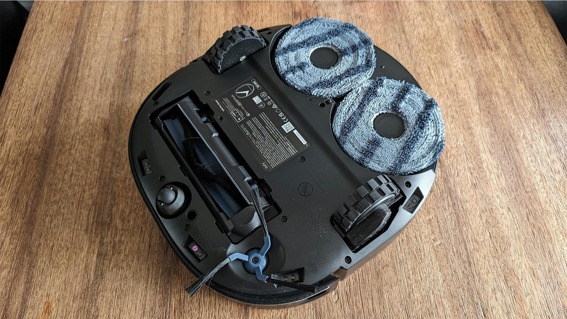 Waar we een beetje moeite mee hebben, is de manier waarop de Eufy X10 Pro Omni zijn schoonmaakwerk uitvoert. Het apparaat begint namelijk aan het begin van een kamer en werkt vervolgens van voor naar achteren toe. Zodra hij klaar is, rijdt hij over de natte grond heen naar de volgende kamer, waardoor je bandensporen ziet ontstaan. En als het licht net verkeerd valt, dan kun je die sporen achteraf zien zitten op de grond. Waarom dit gebeurt, weten we niet, maar het lijkt erop dat de Eufy X10 Pro Omni zijn dweil omhoog trekt wanneer hij de schone kamer verlaat.