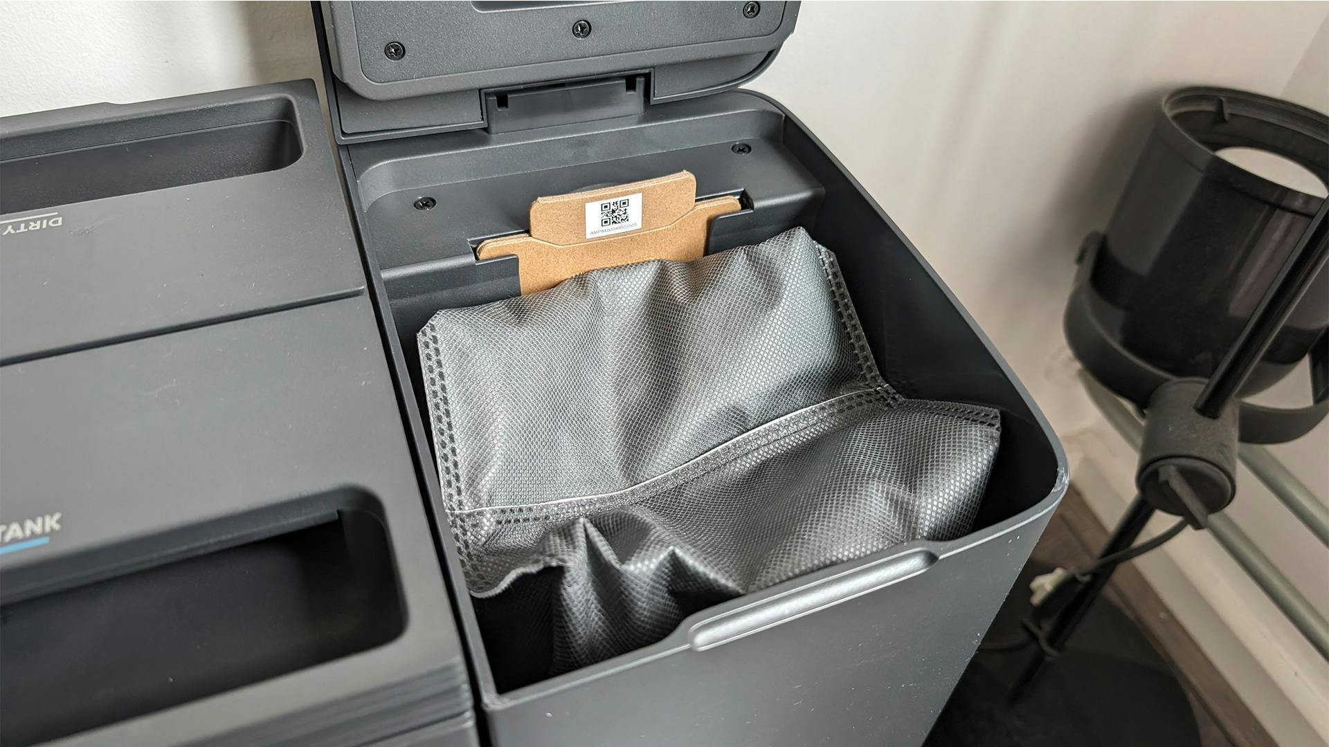 Het basisstation van de Roomba is nog kleiner, maar dat komt doordat je in die dweilstofzuiger zelf het water moet bijvullen. Met de Eufy X10 Pro Omni heb je daar minder omkijken naar en vul je – afhankelijk van het gebruik – zo nu en dan de waterbak in het station bij. Een nadeel van dit basisstation is dat de bakken aan de buitenkant zitten en duidelijk gelabeld zijn, wat op zich handig is, maar ten koste gaat van het ontwerp. Hierdoor gaat het minder op in het interieur van de keuken of huiskamer. Nu is dit niet het belangrijkste, maar voor alle apparaten die in het zicht staan geldt: het oog wil ook wat.