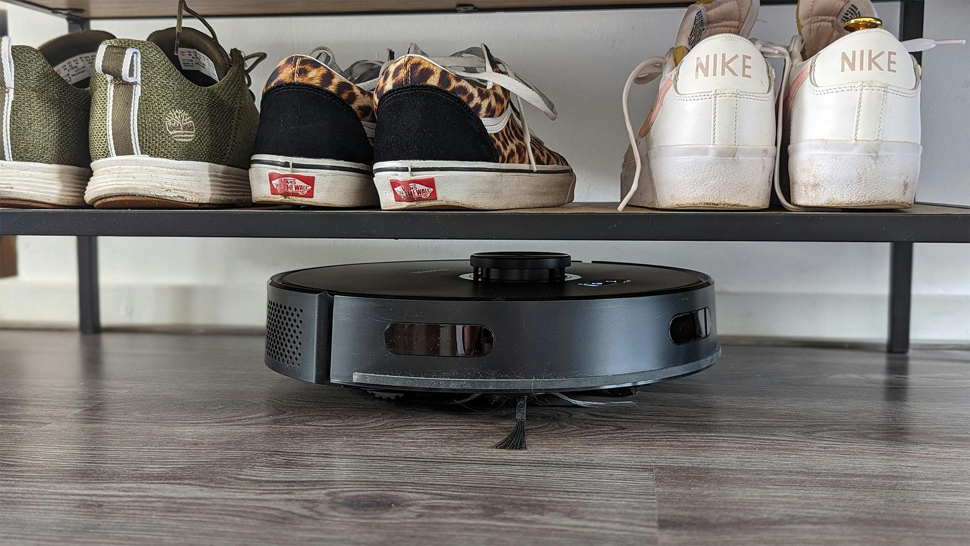 Binnen de app (waarover later meer) kun je instellen dat de Hombli Smart Robot Vacuum extra zuigkracht genereert wanneer hij over tapijt gaat. Maar zodra hij over het hoogpolige vloerkleed in de woonkamer gaat, komt er geen greintje zuigkracht bij. Daardoor blijft er nog weleens wat troep achter. Gelukkig laten de wielen geen sporen achter, waardoor de haren niet worden platgedrukt. Op alle andere plekken waar de stofzuiger komt die wél goed worden schoongemaakt, blijft er geen vuil achter – maar daar staan dus wel flinke kanttekeningen bij.