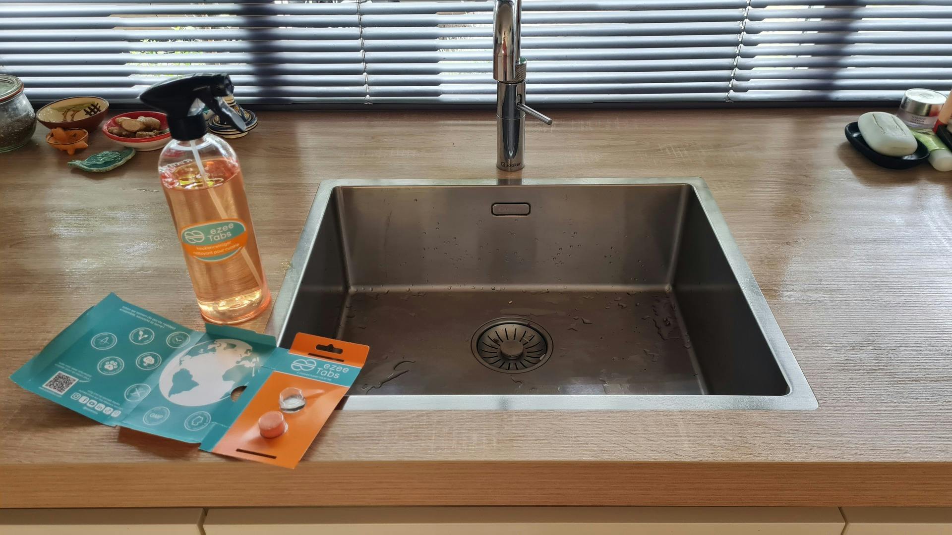 Hoe dan ook, de oppervlaktereinigers doen hun werk. Vlekken verdwijnen en kranen en handgrepen glanzen weer. Het is geruststellend dat deze producten goed zijn voor het milieu, niet agressief zijn en een lage pH-waarde hebben. De flesreiniger van EzeeTabs reinigt drinkflessen uitstekend. Gewoon vuil verdwijnt en de flessen zijn weer klaar voor gebruik. Jammer genoeg haal ik er geen kalkaanslag mee uit een thermosfles, maar dit wordt dan ook niet beloofd door het merk. Ook de machinereinigers en ontkalkers voor vaat- en wasmachine presteren goed. Vanwege de compacte verpakkingen en de aanwezigheid van meerdere tabletten, kun je gemakkelijk een voorraad schoonmaakmiddelen aanleggen zonder dat het veel ruimte inneemt. Je koopt de duurzame tabletten en herbruikbare schoonmaakfles bij Bol.com.