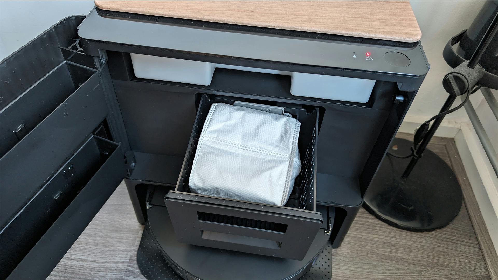 Niet alleen kunnen bacteriën zich zodoende verspreiden, ook kan de pad flink gaan stinken. Vergeet dat onderdeel dus niet na elke beurt even schoon te maken. Gelukkig kan dat gewoon onder de kraan. Het vastmaken van de pad vereist een specifieke handeling en gaat niet zo gemakkelijk als je zou willen, dus ook dat zou nog beter kunnen. Los daarvan is het thuisstation uitgebreid met een waterbak (waardoor hij zichzelf kan bijvullen) en een handig plankje, waar je wat spullen op kunt zetten. 1100 euro is echter nog wel aan de hoge kant.