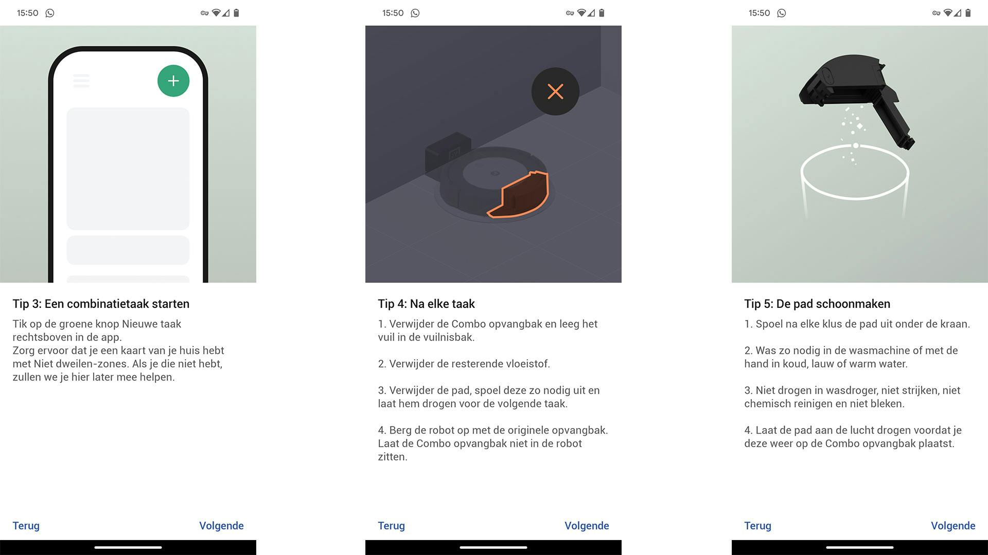 Normaal gesproken zou ik hier een uiteenzetting plaatsen van toffe opties en functies, maar ik val maar meteen met de deur in huis. De Roomba Combo i8+ zou namelijk moeten kunnen stofzuigen én dweilen. Nu gaat dat eerste nog wel goed (en toegegeven, de robot voert die taak bovengemiddeld goed uit), maar van dweilen is simpelweg geen sprake. Dat heeft alles te maken met de zogenoemde Combo Bin, een verwisselbare bak die je in de achterkant van de robot schuift. Eerst moet je de normale opvangbak eruit halen, want anders past de nieuwe Bin met dweillap niet.