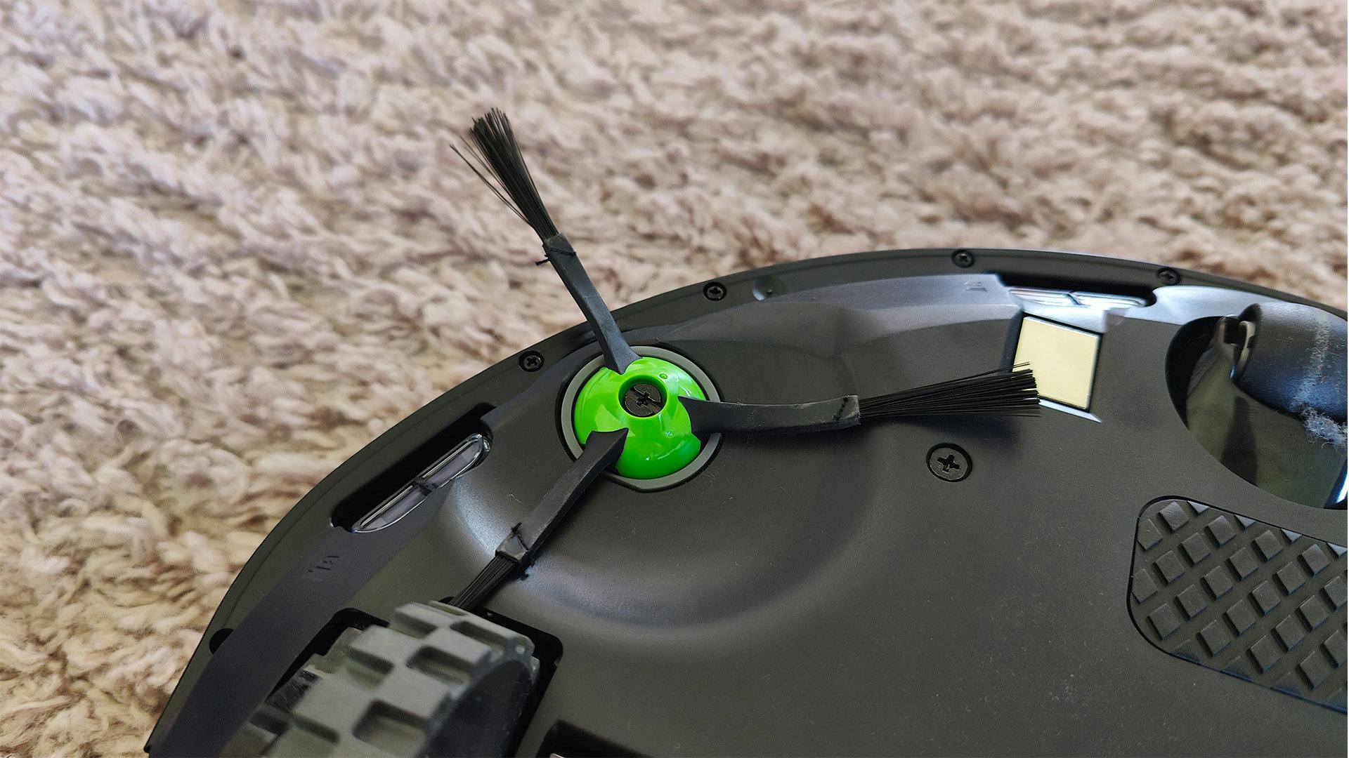 Op het hoogpolige tapijt merken we daarnaast dat de stofzuiger toch wat minder goed werkt. Vooral de zijborstel zit dan in de weg. Gelukkig laten de wielen onderop geen harde strepen achter.