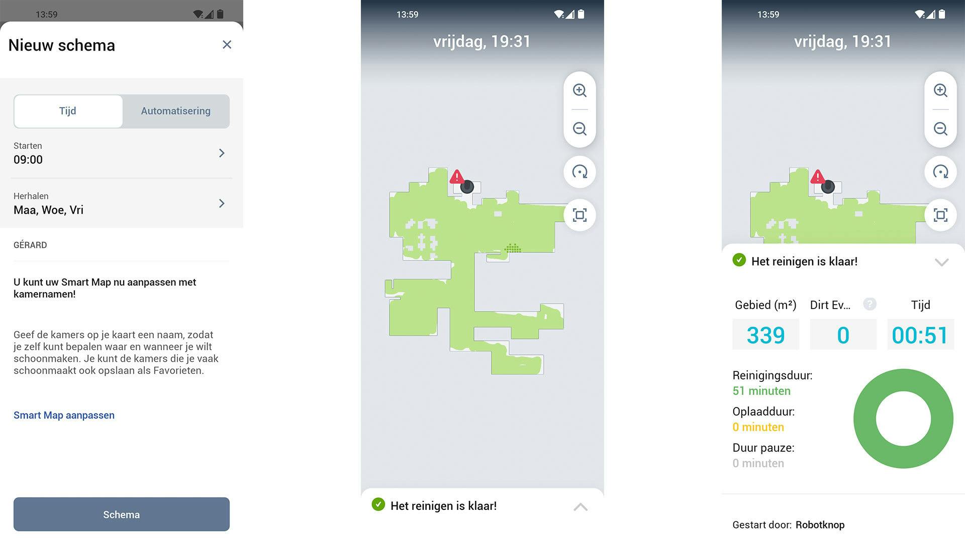De bediening in de app is een beetje onhandig, aangezien kamergrenzen aangeven een priegelwerk is. Maar als het lukt en goed gaat, dan kun je de stofzuiger de opdracht geven een specifieke kamer schoon te maken.