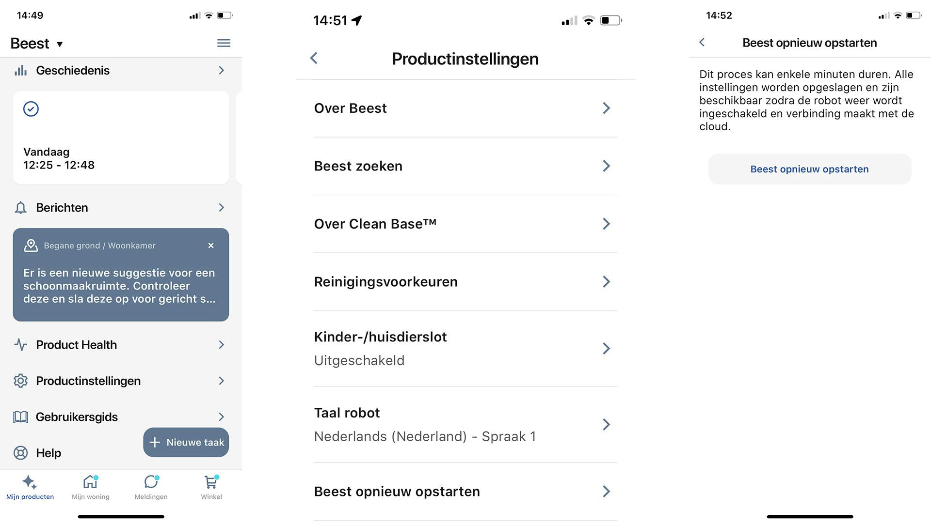 ⇨ Bevestig je keuze in het volgende scherm door op [naam Roomba] opnieuw opstarten te tikken.