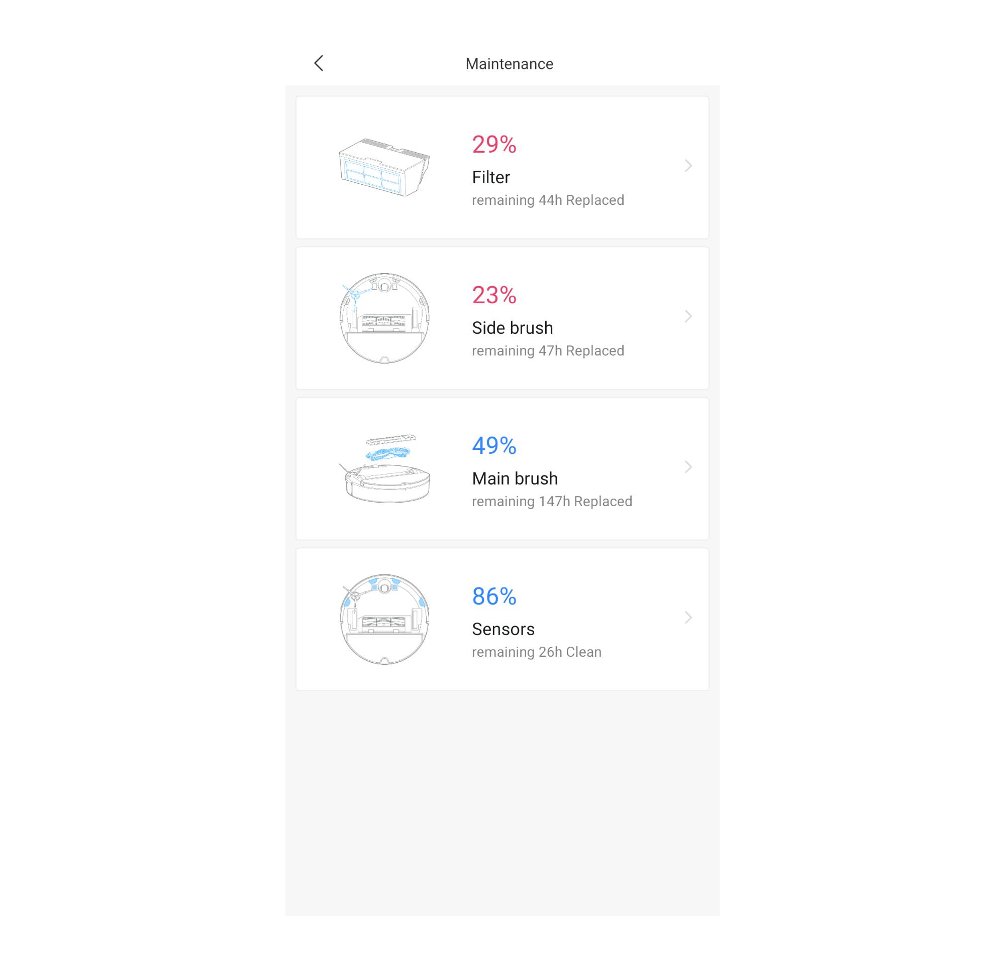 Vervangingsonderdelen Houd er rekening mee dat sommige onderdelen van je robotstofzuiger na verloop van tijd moeten worden vervangen. Dit omvat de borstels, filters en misschien zelfs de batterij. Raadpleeg de gebruikershandleiding van je model om te weten te komen hoe vaak deze onderdelen moeten worden vervangen en waar je vervangingsonderdelen kunt kopen. Sommige fabrikanten laten de geschatte levensduur van de verschillende onderdelen in de app zien. Dat kan een handige leidraad zijn om te bepalen wanneer de borstels vervangen moeten worden.